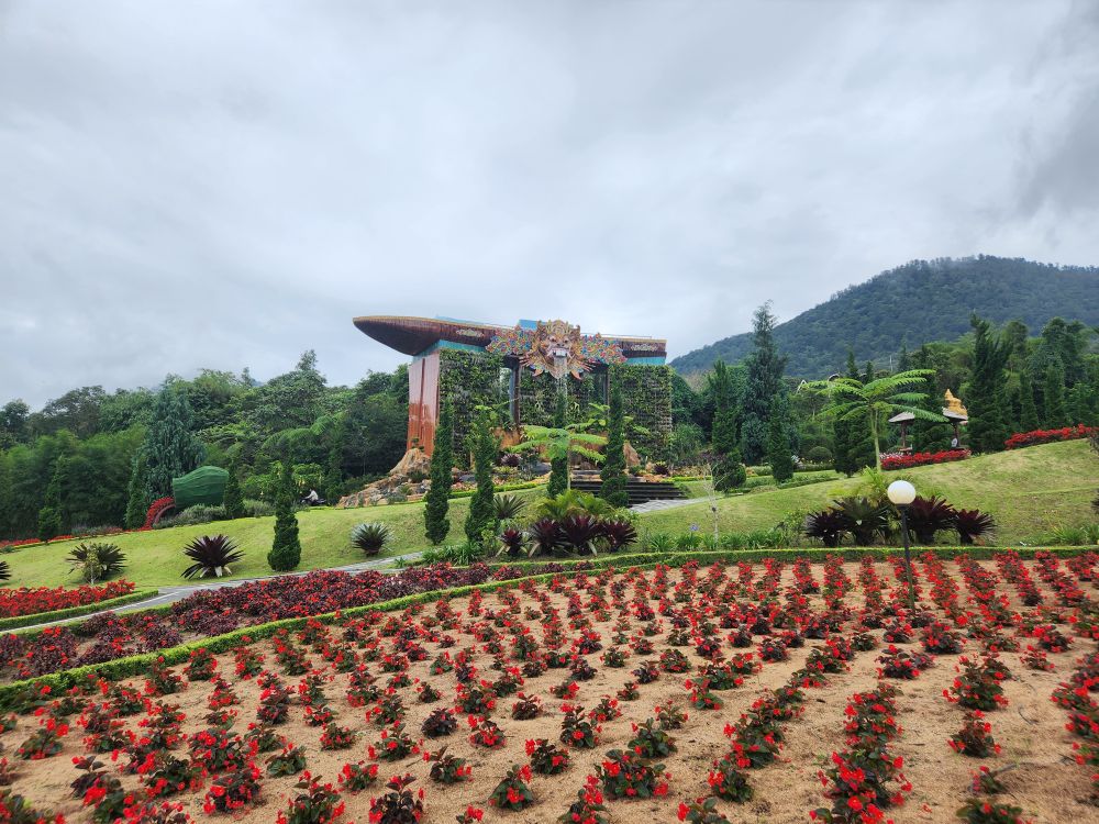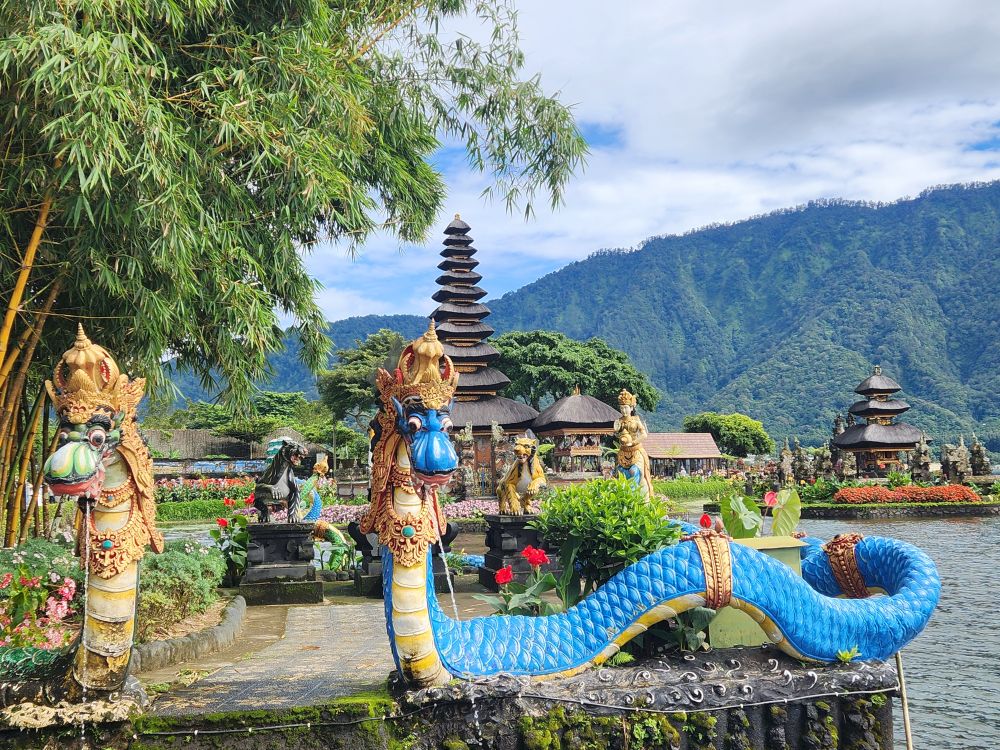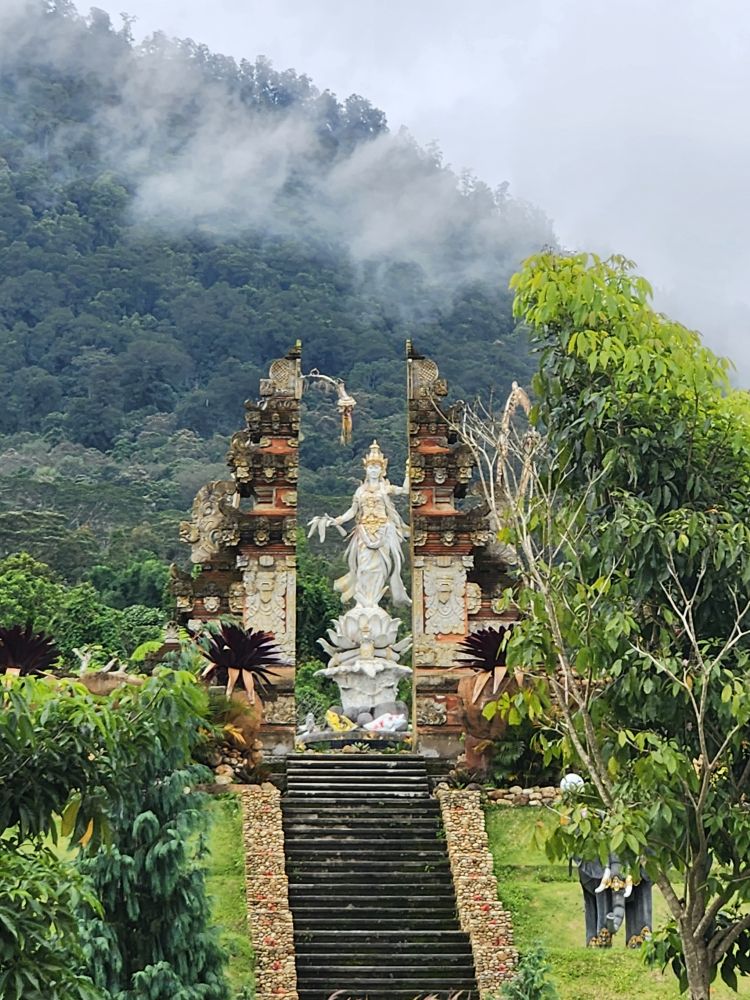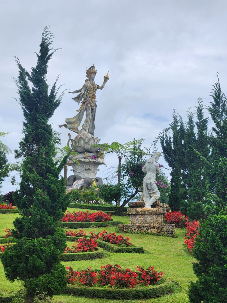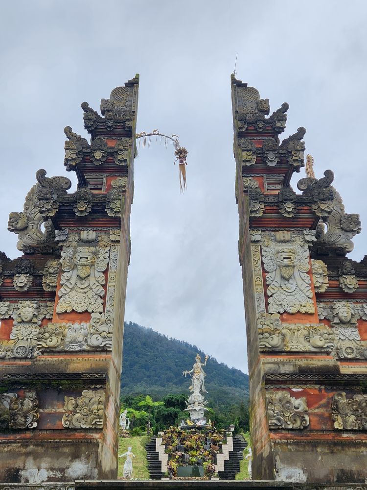 The centerpiece of the garden is the Goddess of the Lake Garden – a huge statue of the Goddess Danu, symbolizing the fertility of crops and of course the goddess of Ulun Danu. There is a replica of the Gates of Heaven in front of the Goddess Danu statue that makes for an iconic photo of both national treasures.