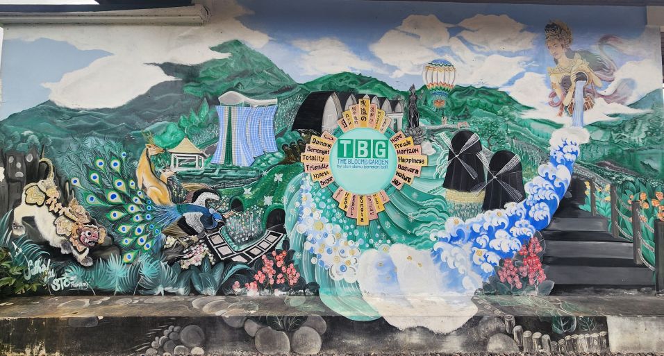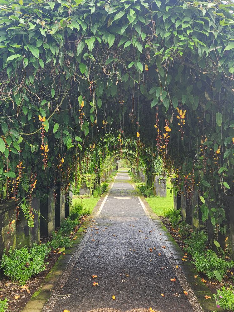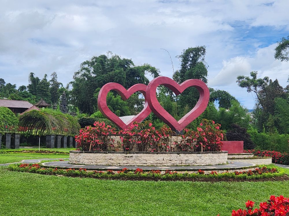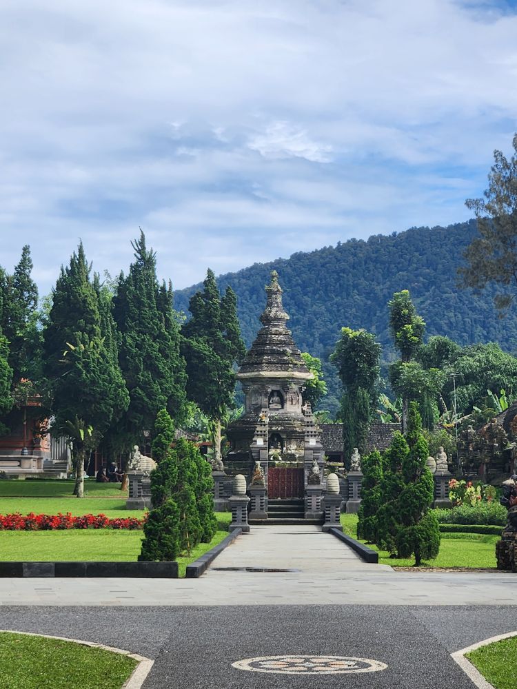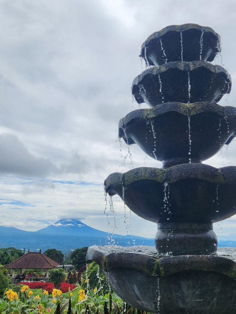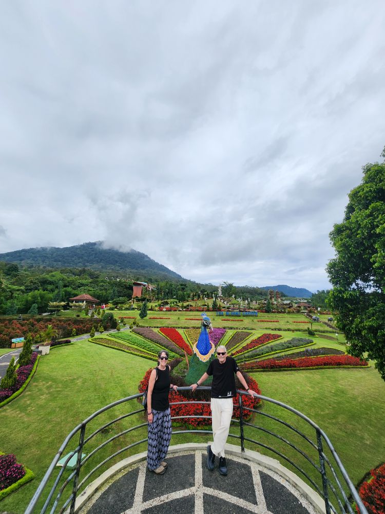 Our next stop are the Bloom Gardens – a combination ticket with the Ulun Danu temple. Divided into 7 different areas, the gardens are the largest flower recreational garden in Bali with over 11 acres of flowers and statuary. We start our explorations in the Welcoming Garden, following the stone pathway up into the hillside past the Dutch Garden with the requisite Windmills.