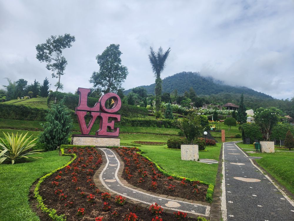 Then into the Garden of Love, so named for all the hearts and beautiful red flowers spelling out the word love on the garden grounds. The whole garden area is just gorgeous, which gently sweeping hills and different features dotting the landscape.