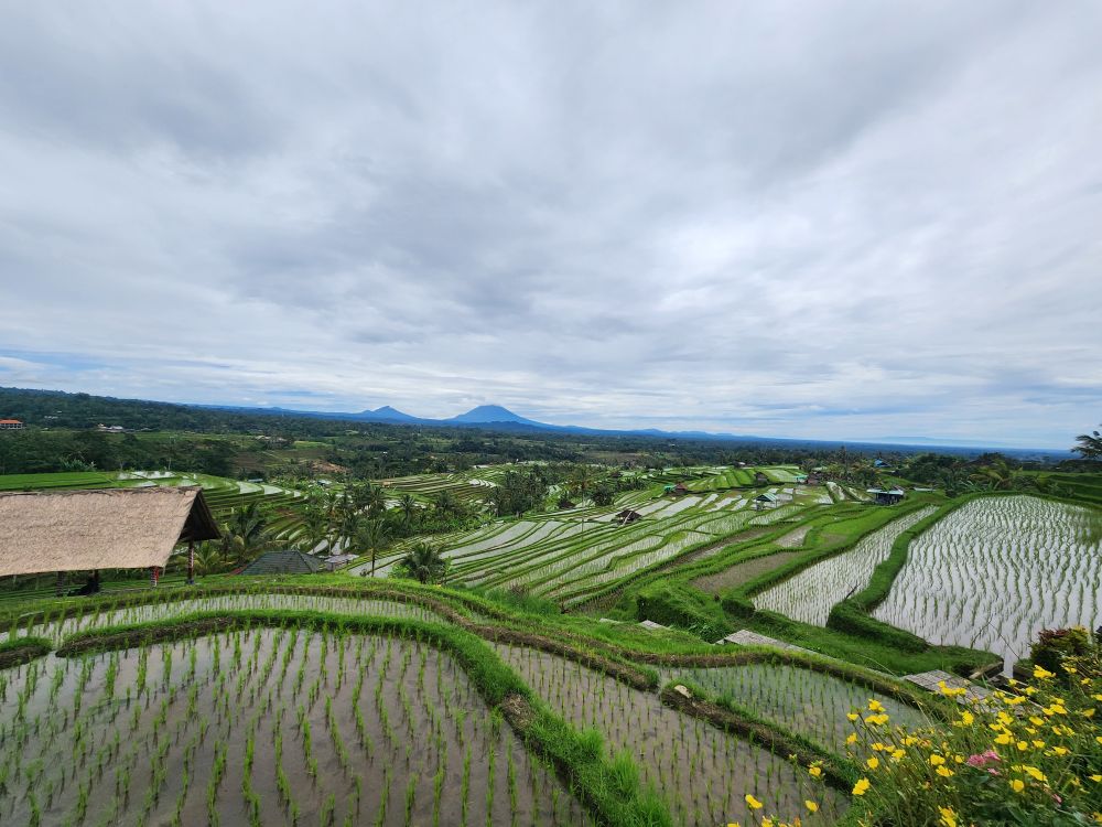Back into the car we go for another hour drive out into the country to the Jatiluwih Rice Fields. Paying our entrance fee at a booth at the bottom of the fields, Dadek drives us through the gorgeous rolling fields that gently climb up along the mountain sides.