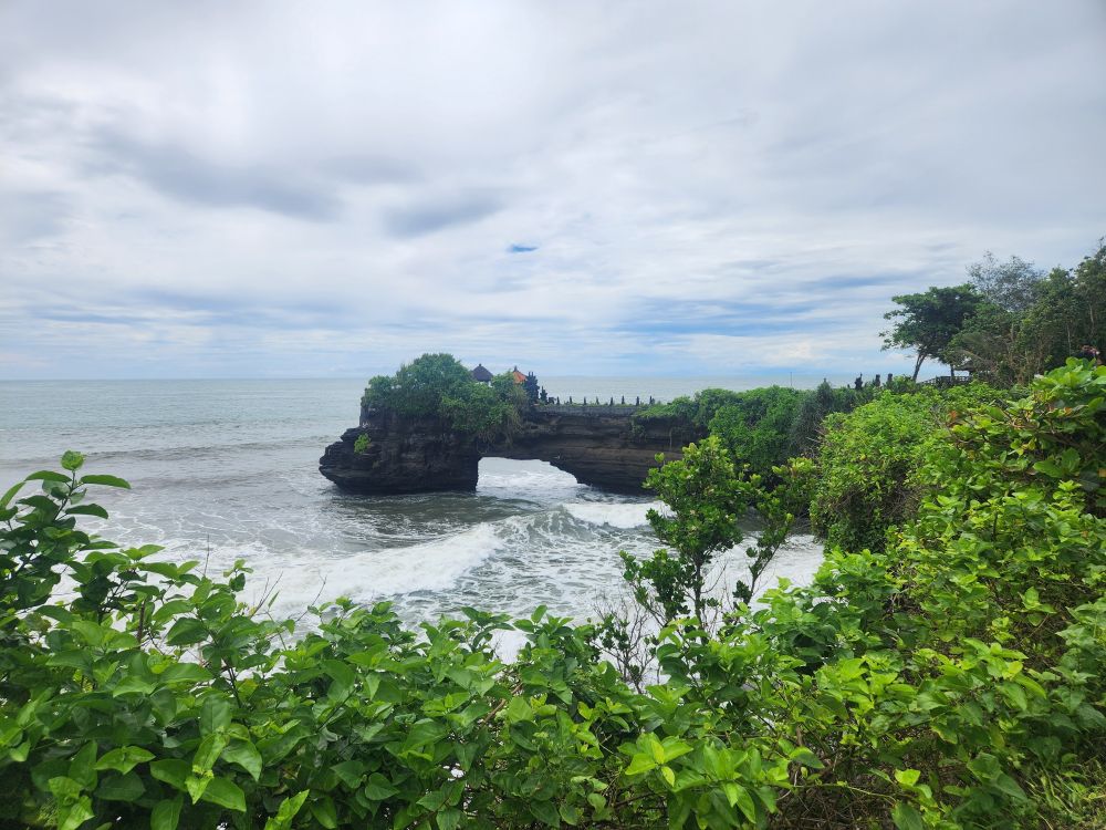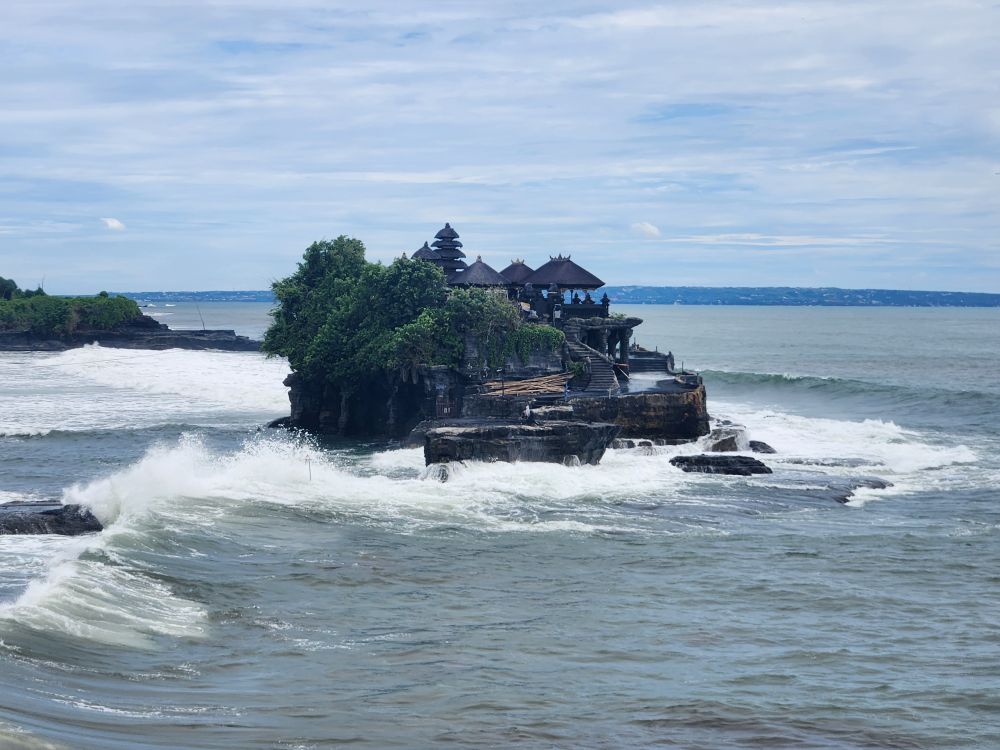 If that wasn’t gorgeous enough, as we walk around the little cove, views of Tanah Lot come into view. So magical – sitting out in the water all on its own.