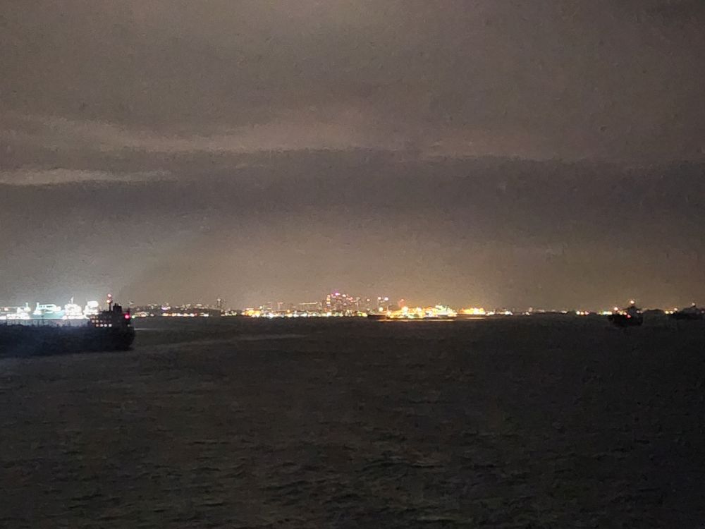 Evening gym (packed when we arrive, a ghost town at 5pm – it is Chic Night tonight and we guess everyone is going to get all dolled up?), cabin drinks (it has been rainy all day, so it isn’t overly hot on the balcony, thankfully), then dinner at one of our normal tables with Ketan and Ajit. Ketan is great and we love his section – although tonight we get chatty Brits next to us who just love Celebrity, yada, yada. We chat for a bit, talking about travels, etc., and when we mention we took the longest flight in the world to get here, the husband challenges us on the longest flight saying there is one longer. Oh no. Please. The wife even searches on the internet and finds our flight as the longest, but no, he has to find the one that is 4 hours longer (but with a stop, which doesn’t qualify). And you wonder why we try to be anti-social?