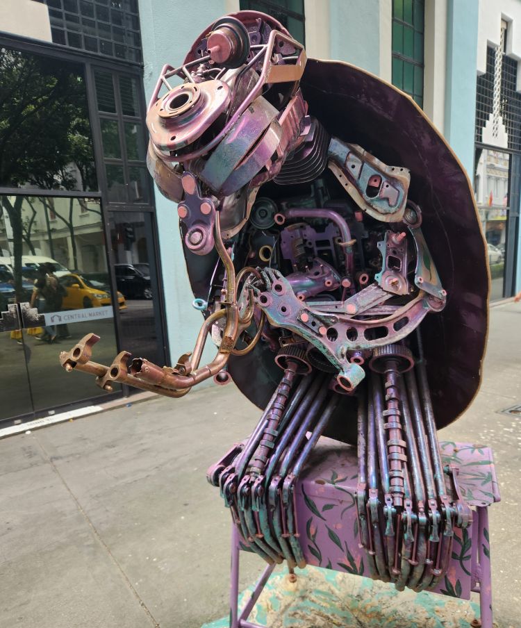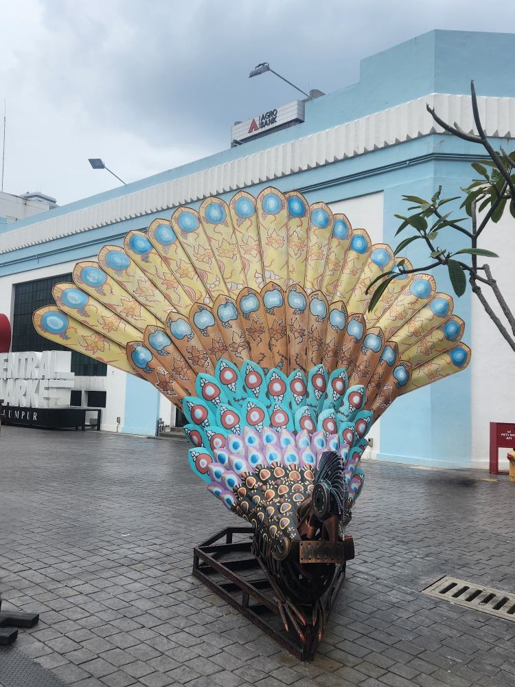 Plan B. We had spied the Textile Museum across the street from where we were dropped earlier and decide to head there, first passing some of the great modern artwork outside the Central Market that focuses on “vulnerable” or “critically endangered” species – The Malayan Peacock and the Painted Terrapin in particular.