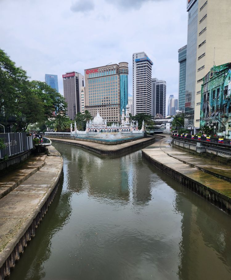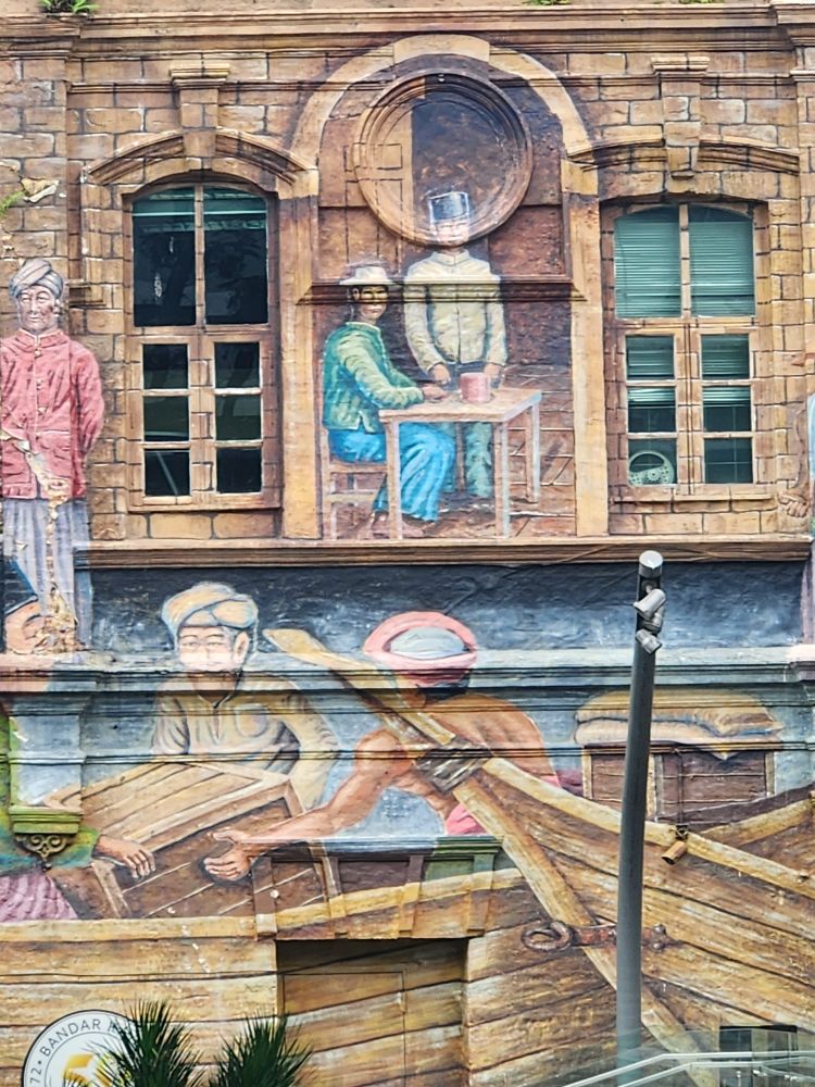 Then it’s a quick and easy walk, passing by the River of Life, the confluence of the Klang and Gombak rivers, in front of the Jamek Sultan Abdul Samad Mosque. Totally picturesque – the gorgeous mosque juxtaposed against huge modern skyscrapers. There are also some wonderful murals painted on adjacent buildings.