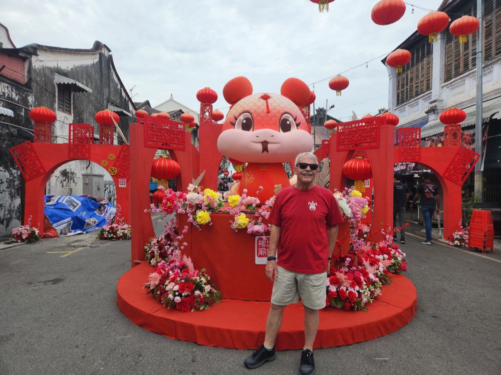 Arriving at the hotel, the sweet hotel clerk/manager (she was there all the time!) checked us in, took our overnight bag to hold while we wandered about until the room was ready after 2. Ok – we’re off to wander the streets, get our bearings and see what we can see. It is the end of the Chinese Lunar New Year celebration and there is a huge festival going on in this part of town – the roads are blocked and there every street is chock full of booths, tons of decorations, maps and stages. The activities don’t start until 4pm – which will make for a fun evening for us!