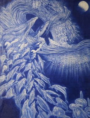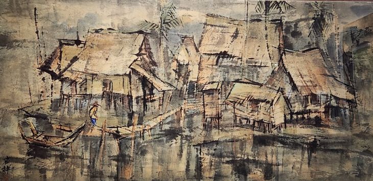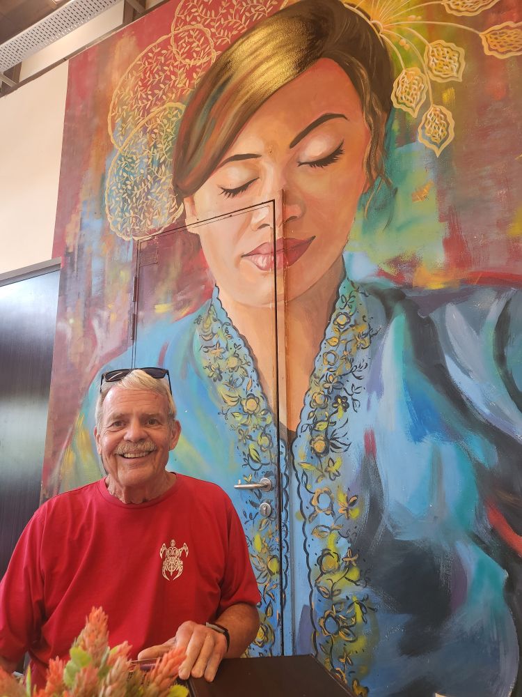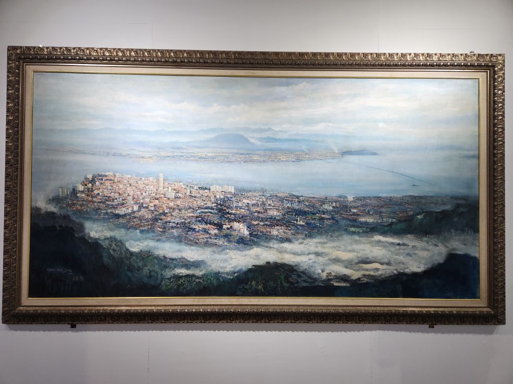The guard/docent/guy at the front desk has us sign the guest book, then makes sure we understand we should also go to the main museum on the ground floor. Aha! So this was just and exhibition space or something. He actually walks us out onto the stair landing and points to where the doors are located. Thank you! Would have completely missed it – as we came in on another level from the street. The main museum is much, much bigger with tons more art – including this great oil painting of the whole of Penang island, as well as the more traditional, more fun, and just strangely intriguing.