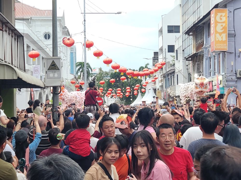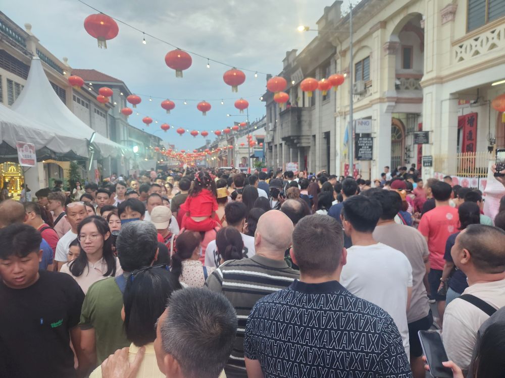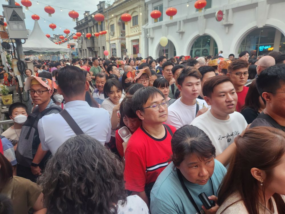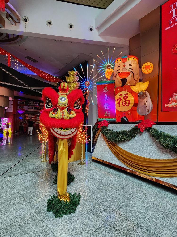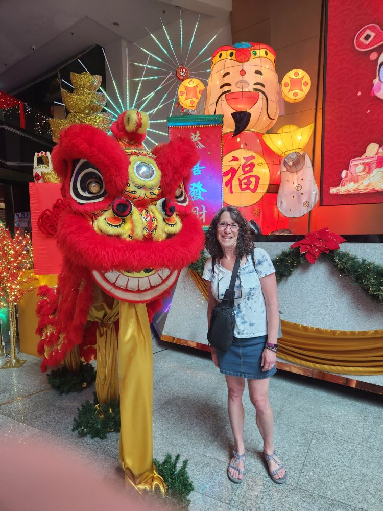 Delving further into the crowds, we actually lucked into seeing the tiger parade and dance. Fantastic! The traditional Chinese tiger outfits with 2 people in them – up on those little platforms doing dances and messing around. We could sort of see – we were way back in the masses of people – but what we could see was great.