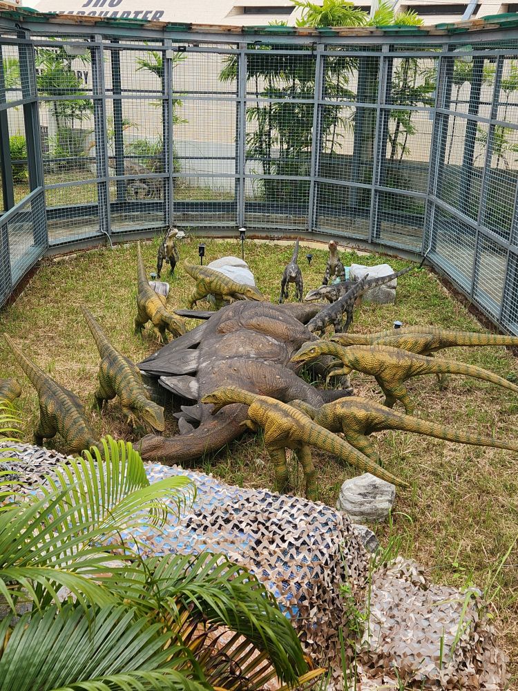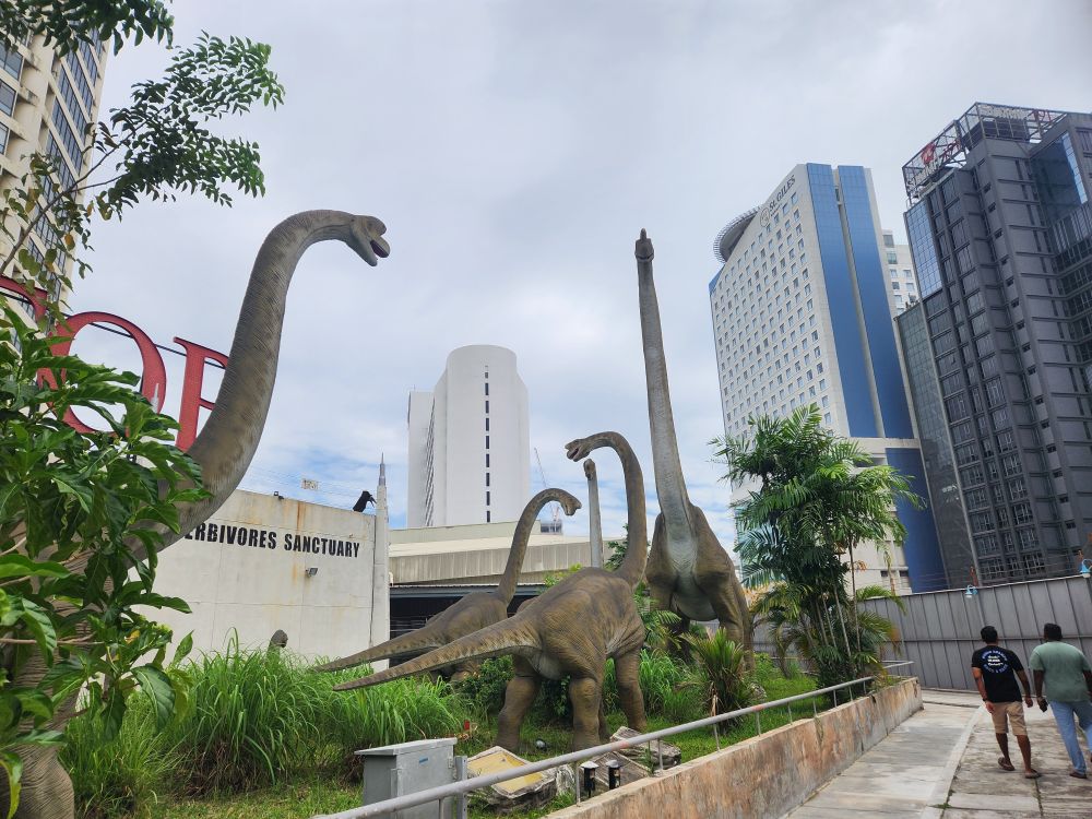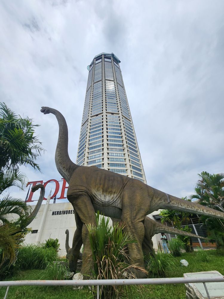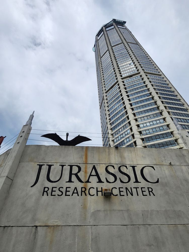 We decided to buy the combo ticket for the Skywalk viewpoint, Jurassic Research Center and the Aquarium since it was literally only $2 USD additional per ticket than a solo Skywalk ticket – what the heck? We’ll get our money’s worth and the theme park experience, why not? Up we go to the 65th floor to wander around the glassed in observation area with the obligatory – and always scary – glass floor that lets you look down, way down, to the street below. Shivers.