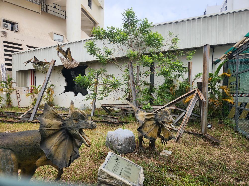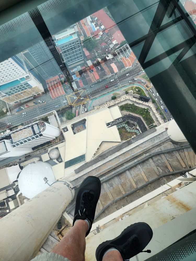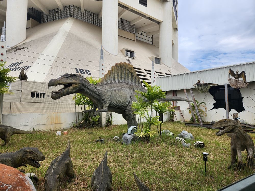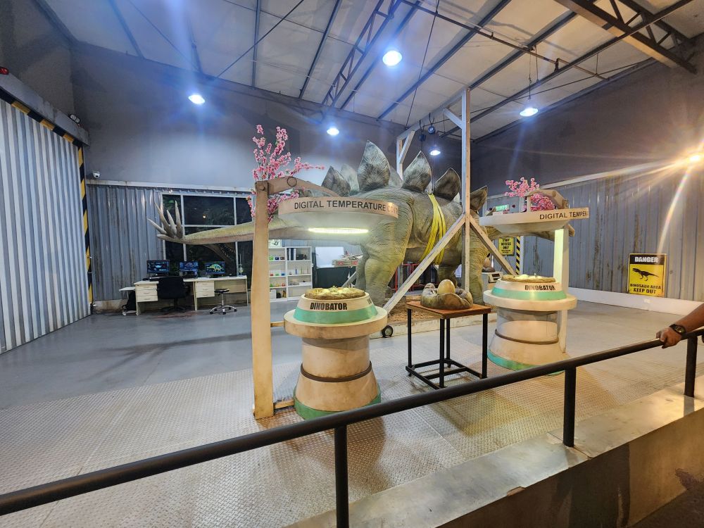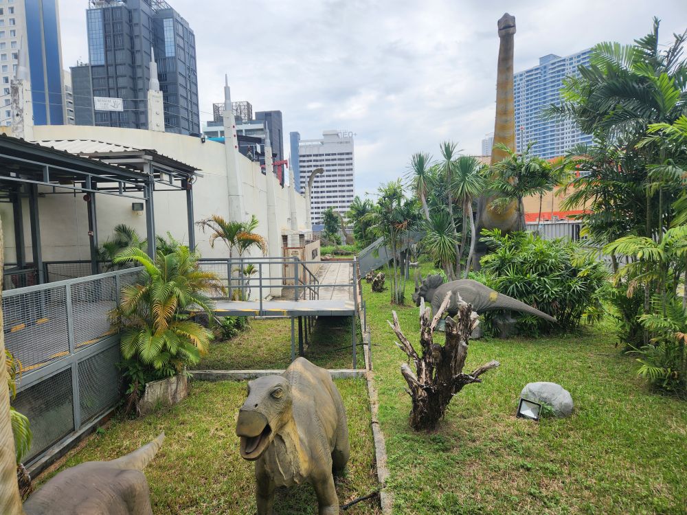 We decided to buy the combo ticket for the Skywalk viewpoint, Jurassic Research Center and the Aquarium since it was literally only $2 USD additional per ticket than a solo Skywalk ticket – what the heck? We’ll get our money’s worth and the theme park experience, why not? Up we go to the 65th floor to wander around the glassed in observation area with the obligatory – and always scary – glass floor that lets you look down, way down, to the street below. Shivers.