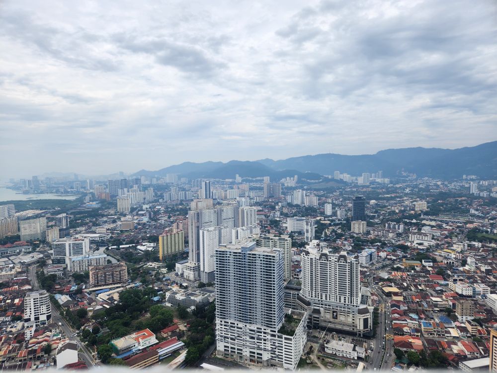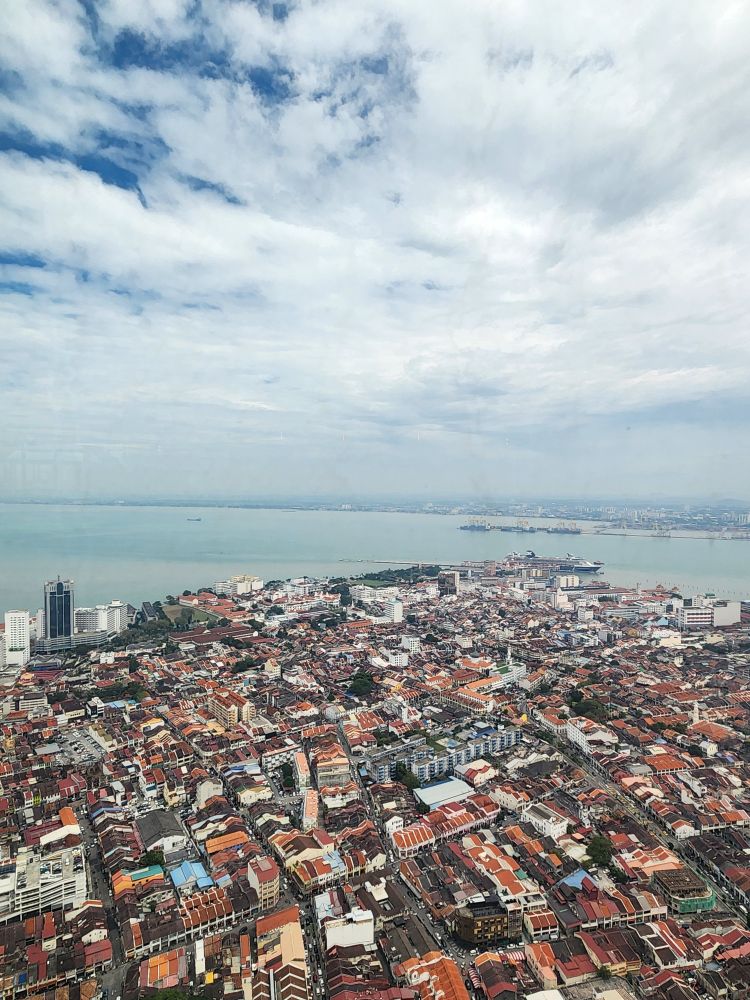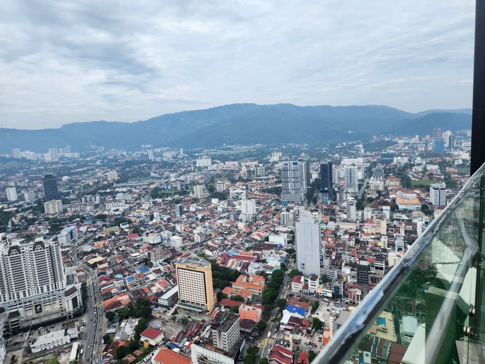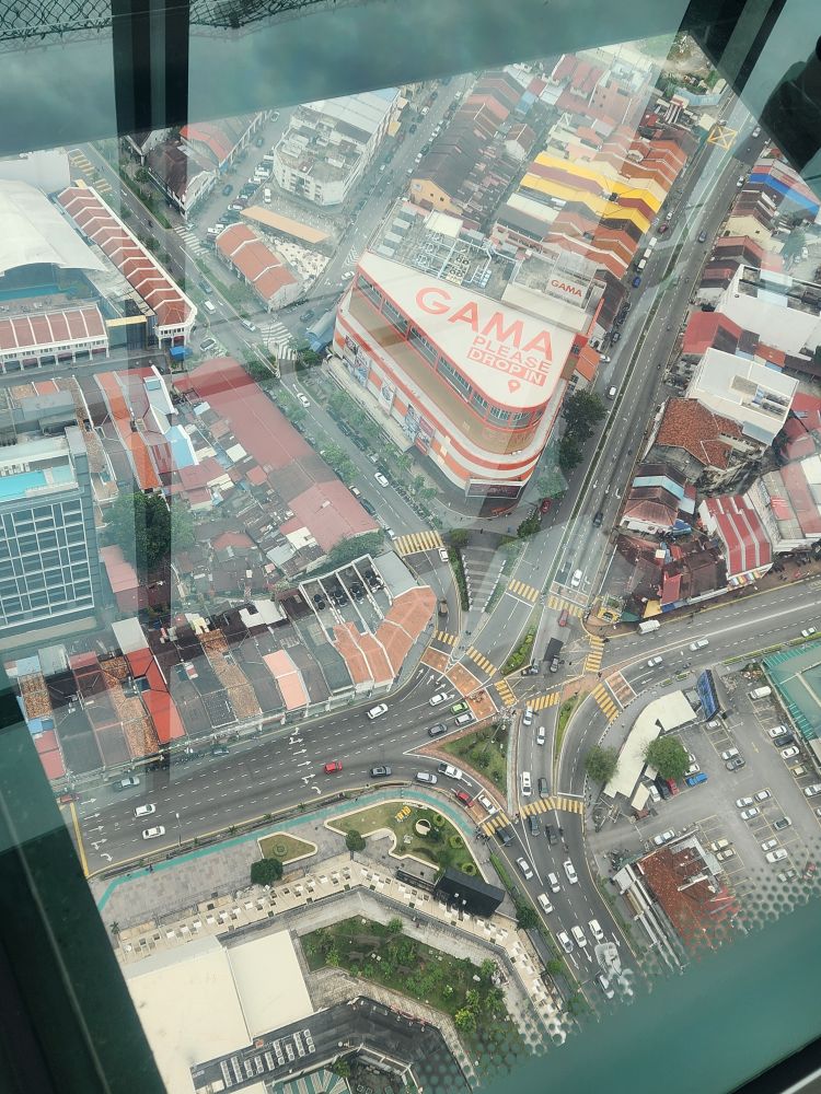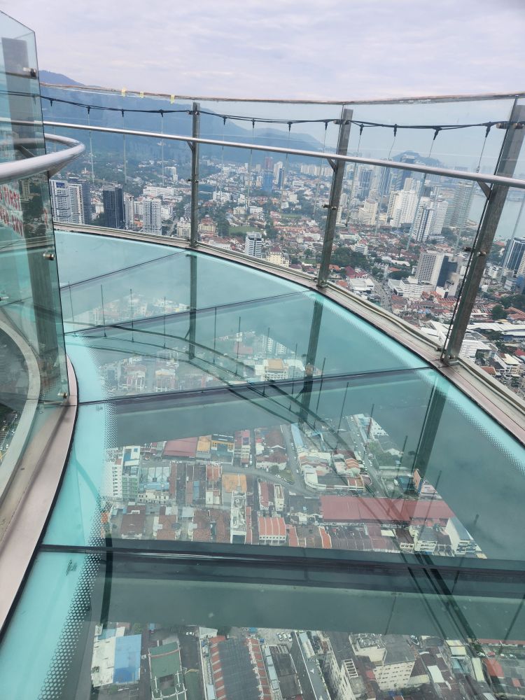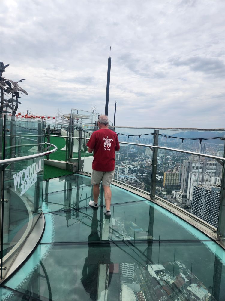 We’re ready for the rest of our afternoon – which entails walking out of the old city, encountering a guy on a bike with these little squirrel looking things? Who knows? Then on past the Kapitan Keling Mosque, the first permanent Muslim institution to have been established in Penang in the early 1800s, and on into the more modern skyscraper filled part of Georgetown on our way to The Top – a huge skyscraper building with 360 degree views from top floor observation decks and a whole ton of different activities – mostly geared to kids.