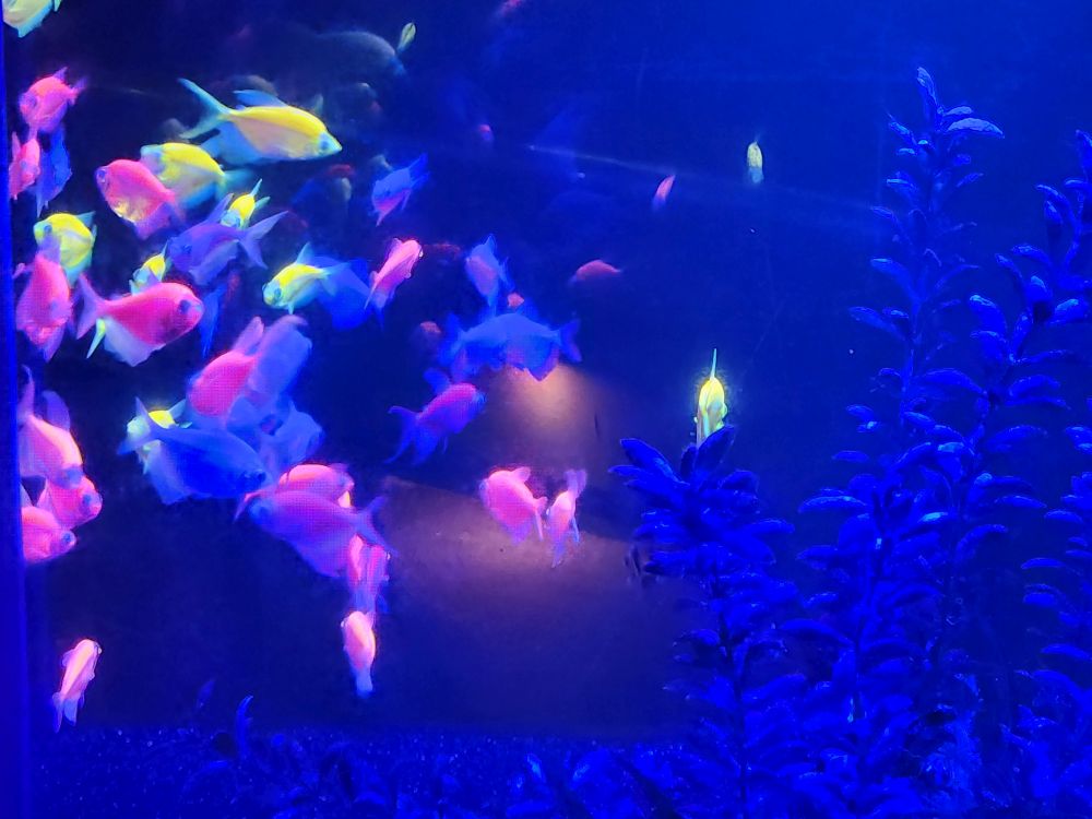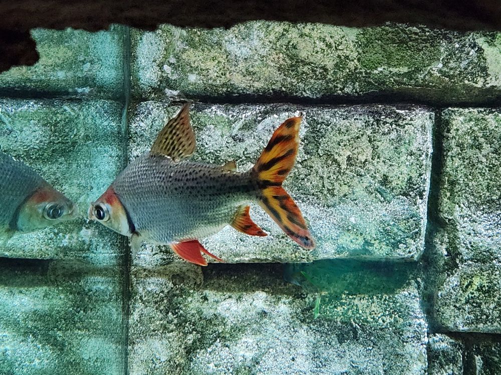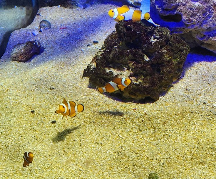 Our last attraction was the Aquarium downstairs by the exit. It was quite big and wound around in a labyrinth sort of way through the bottom of the complex. There were all sorts of different fish from the region, as well as other areas. Some of the more interesting fish were these really cool florescent fish, scary snowflake moray eels and an American Flag Tail fish – that did look like the stars and stripes on a fish. We’ve never seen anything like that before.