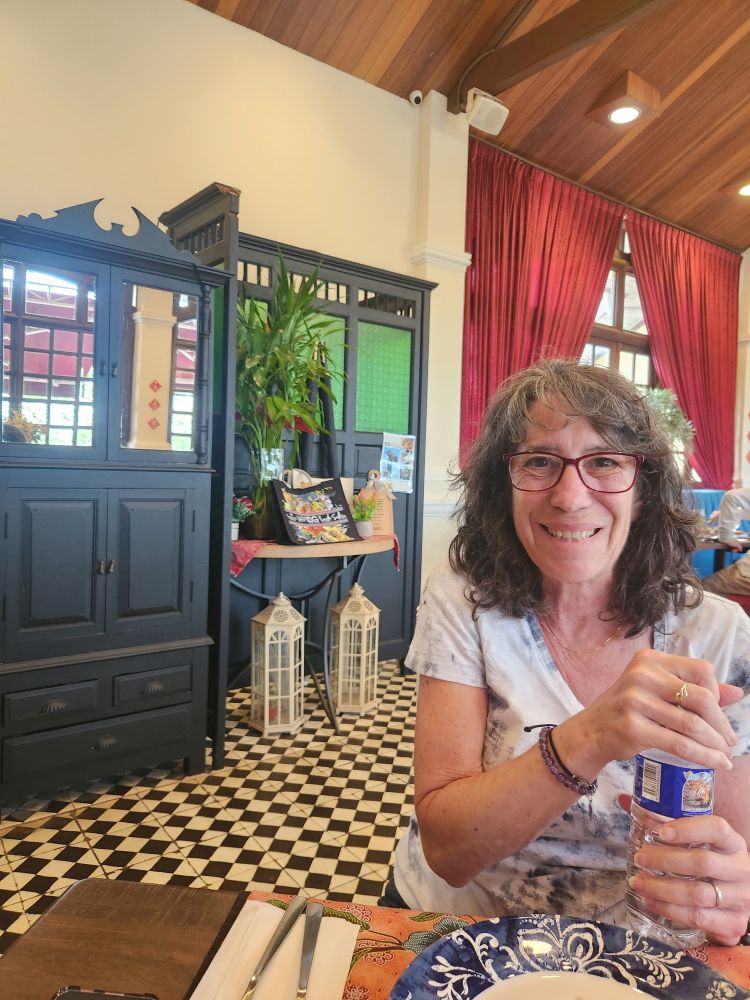 Settled in, we are now on a hunt for beer and wine. Found one bottle store with no white wine, then another a few blocks away that was closed, but a helpful guy sitting out front drinking his beer told us the owner just went to the ATM and he’d be back soon. Ok. We’ll wait. We ended up becoming best buds with this guy (whose name we never knew), from Italy, comes to Penang and stays for months, had his mom and dad with him as well. Total card! We talked for probably 30 minutes – because the shop owner still hadn’t come back. Italian guy told us about this great locals bar where they accept everyone and it is so fun, and you can meet the nicest, best people. He gave us basic instructions, as in, down this street, turn left, behind the Temple, you’ll see it. Maybe later, we’ll head there. Finally, the owner shows up and we proceed to buy the most expensive bottle of wine EVER! Australian Chardonnay of all things – thank God it tasted good – but still! I can’t remember the brand now (should have taken a picture) but it was less than the Lindeman he had, so you know it was cheap wine we could buy there for 5 or 6 USD. You do not want to know how much it cost. Should have just brought it from the ship! (Which trust me, I am DEFINITELY doing for our Phuket overnight!). Well, at least we have our supply. Back at the hotel, our sweet clerk/manager girl made ice for me so I could have it with my wine and water. Talk about service.