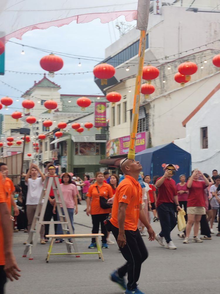 We bobbed and weaved our way through, stopping to watch a guy balancing this huge bamboo pole on his forehead.