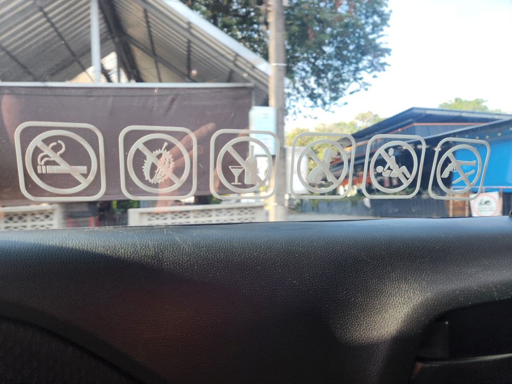 Oh and gotta love the warnings in the cab. Catch the 2nd to last one! Yep, this is definitely Phuket/Pa Tong!!!
