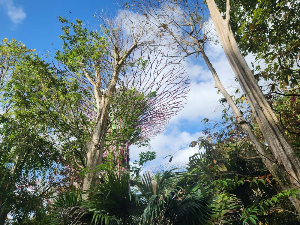 Down on the lower tree walk, there are great views up to the canopy walk, where you can see just how it is suspended out into air – connected to the forest walls only. Amazing how it holds so many people! There are also nice views down to the orchid garden which we couldn’t visit because they were changing out the display down there.