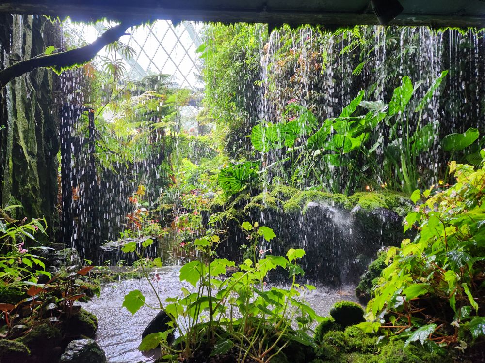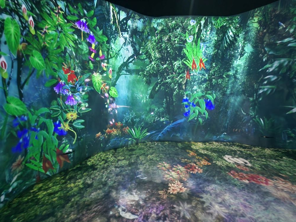 Coming off the canopy walk, we get to the viewing platform at the side of the waterfall which has some great angles, then into a multi-media video exhibit on the trees and flowers that make up the forest. It is fun, for a bit, especially when you jump on marked spots and make things grow on the walls.