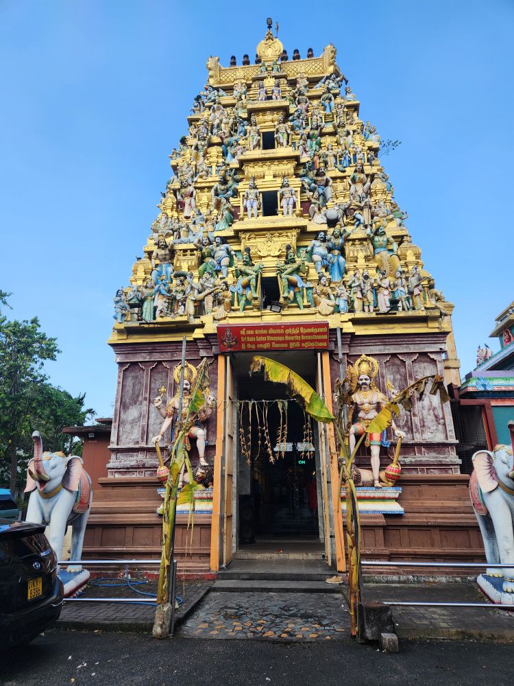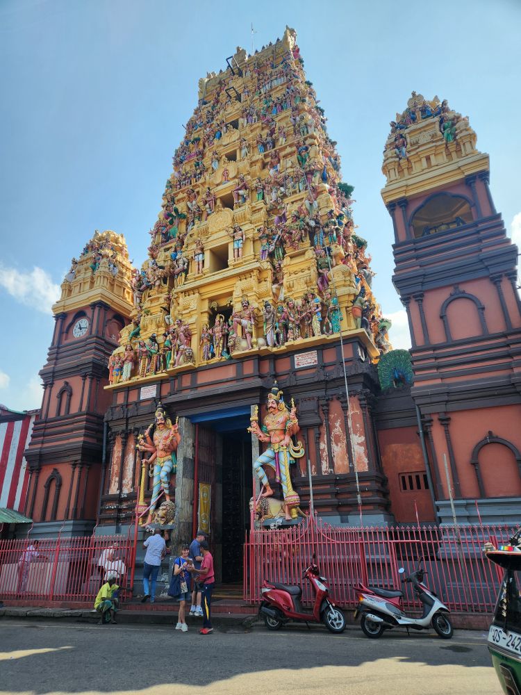 More city streets, more history – 15 years ago there were only 3 tall buildings (which we drive past), now there are tons and tons of high rises – we arrive at the Sri Kaileswaram Temple – the oldest Hindu temple in Colombo where we visited on our last trip. We told Shifon we had been here, so there is no reason to go inside – instead we just wandered the vibrant exterior, snapping more photos of the façade and trying to evade the vendor with the python and the monkey!