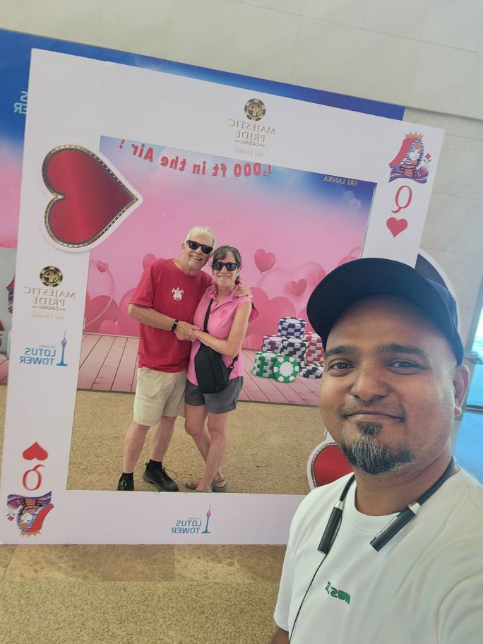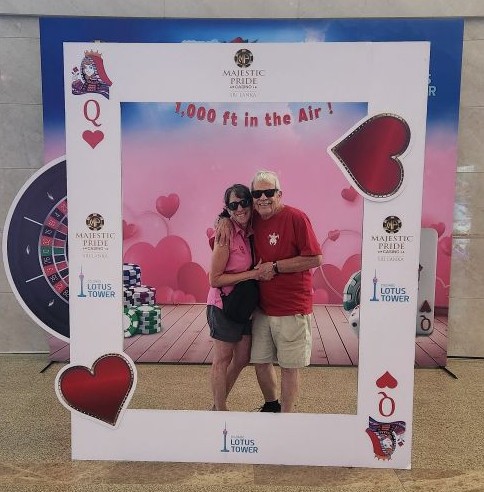 Next, we head to the Lotus Tower, the tallest self-supported structure in South Asia and the 2nd tallest in all of Asia, this time to go up to the top for the view. But first we must stop for a photo opp at the Valentine themed Lotus tower/casino cut out. Fun!