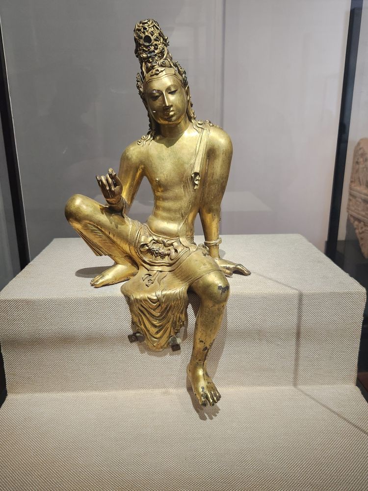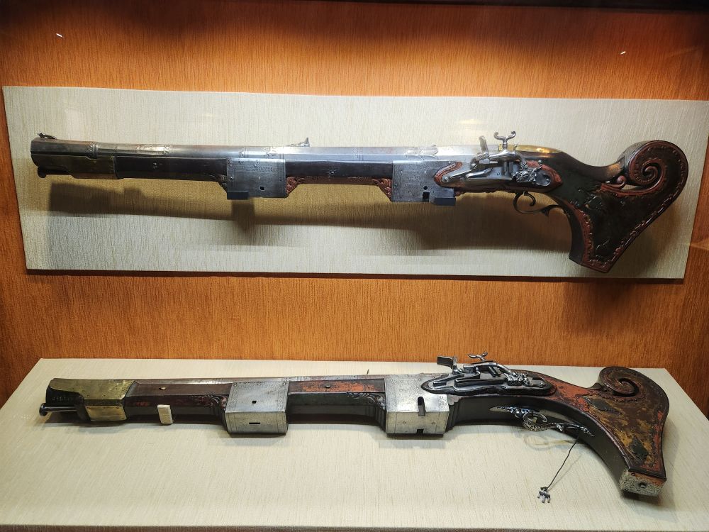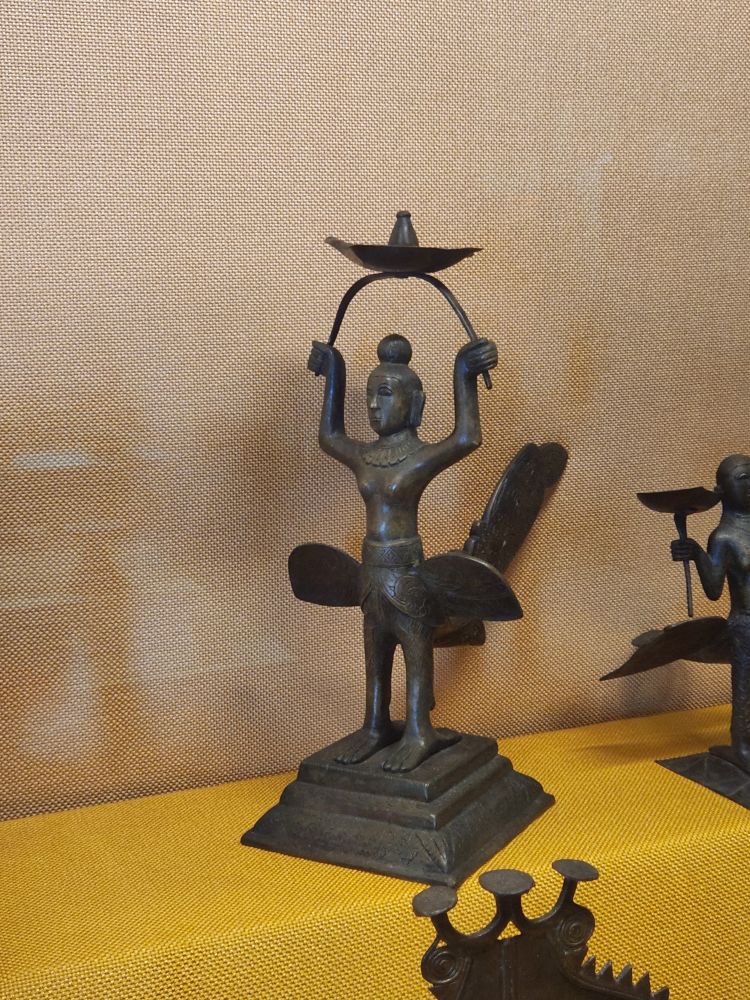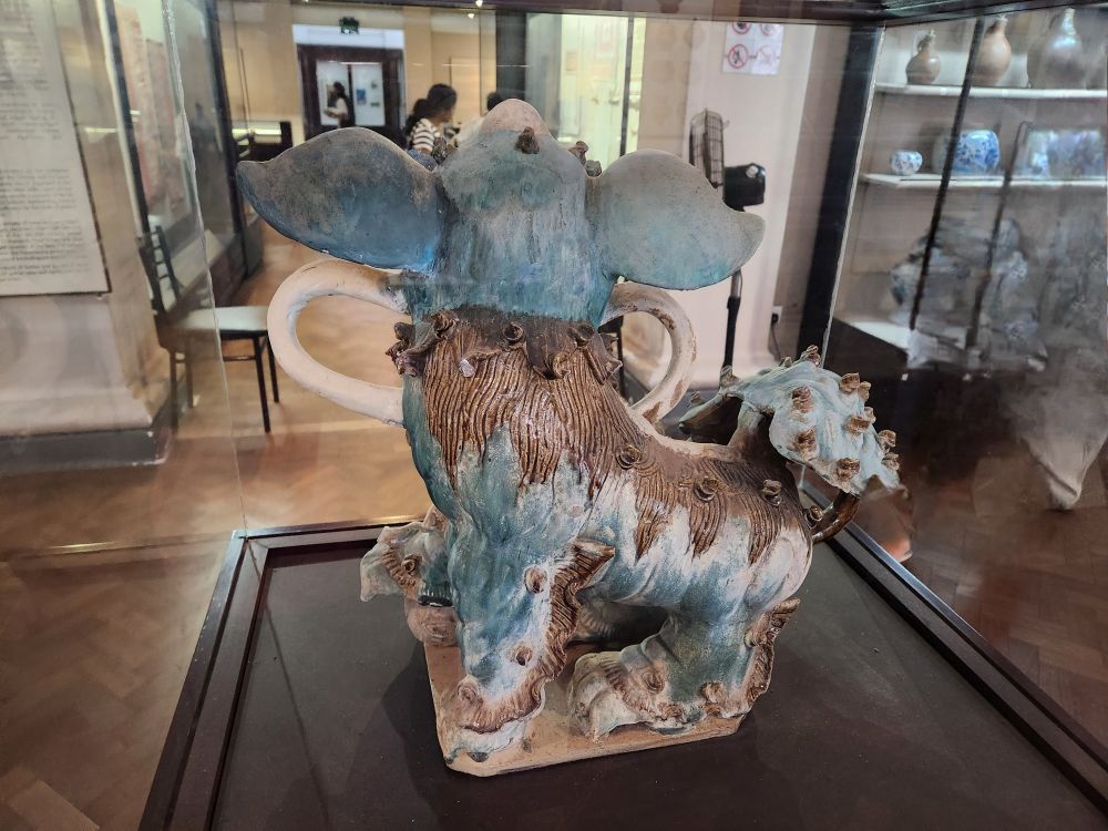 Then we moved into more modern day Malay and Chinese items – the bright and caricatured Krishna depictions, crazy (or grotesque as they described it) ceramic lion, neat tea pots, then more carvings, ivory combs, more hanging brass lamps – this time in the shape of lions and standing lamps in the various bird-man shapes, finishing up this wing passing by this cool looking cannon (why would they make the cannon so artistic? We get the Lion reference, but still….).