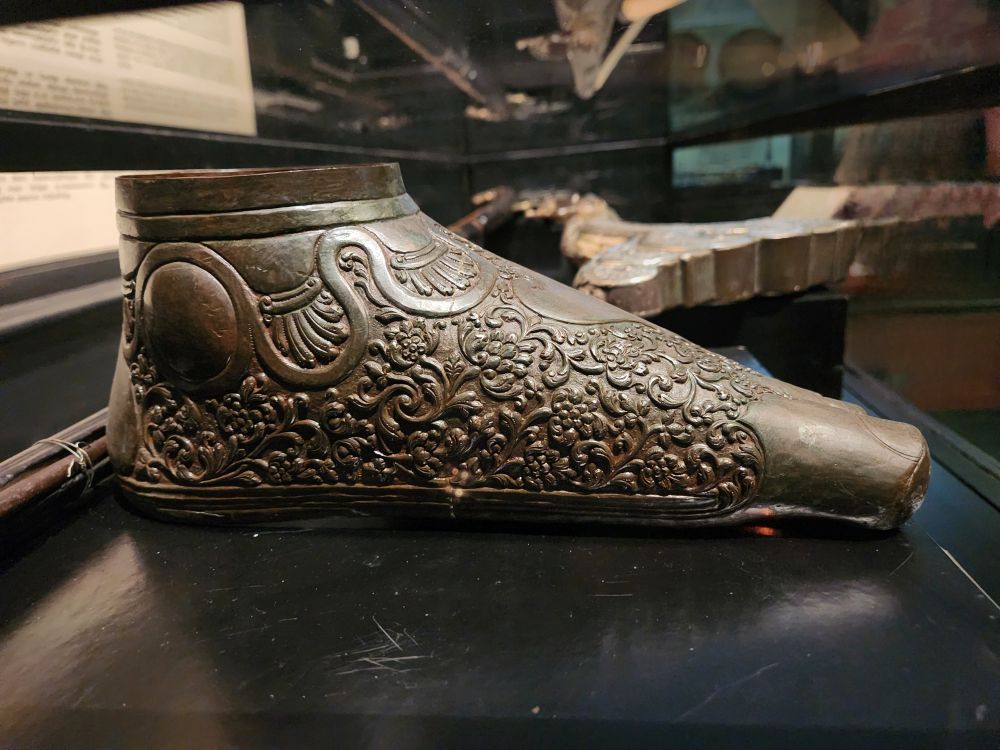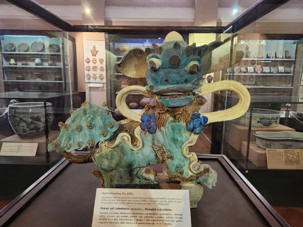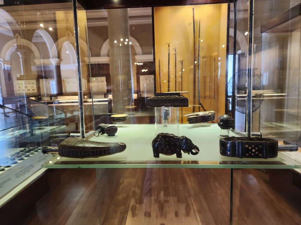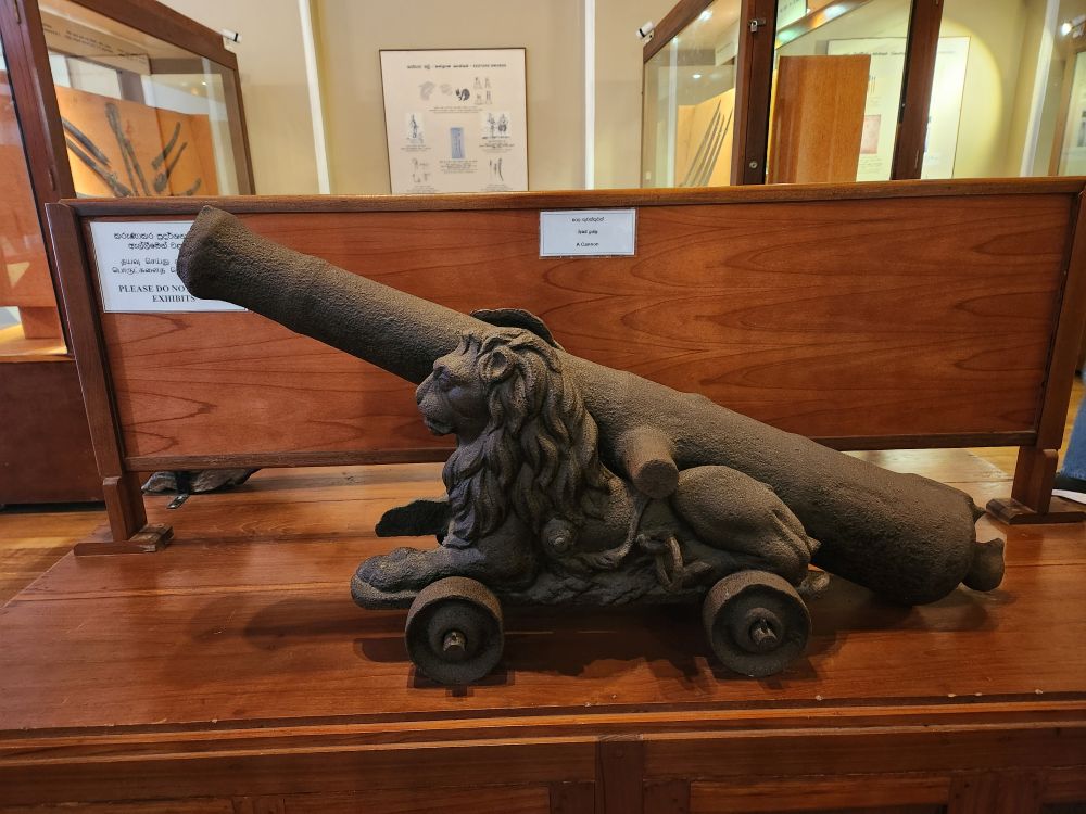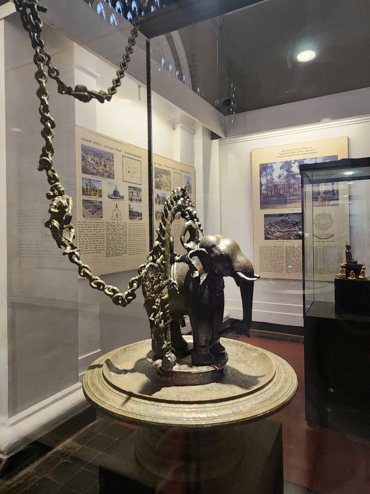 Now its onto the Sri Lankan National Museum, the largest museum in Sri Lanka, housed in this gorgeous, huge, 150 year old building. Fabulous! There are so many rooms and displays and different exhibits – it is hard to know where to even start to explain! We went from hand carved shotguns to 6th Century Buddha icons to totally cool hanging oil lamps in the shapes of Elephants to reliquary to Royal sandals cast in bronze. It was overwhelming – in a great way.