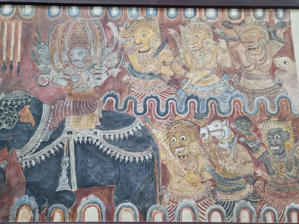 There was one whole wing with ancient wood and rock carvings, like this guardstone used a front door mat, along with frescoes now displayed in frames.