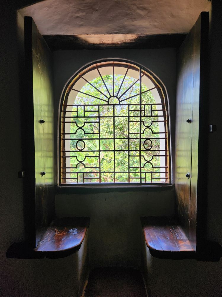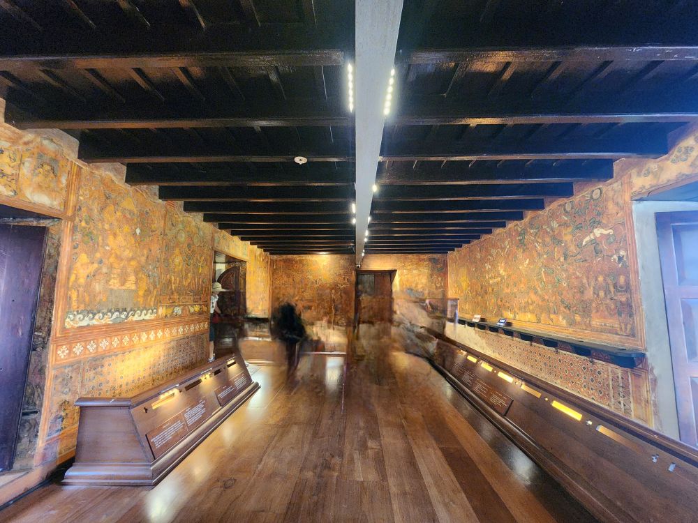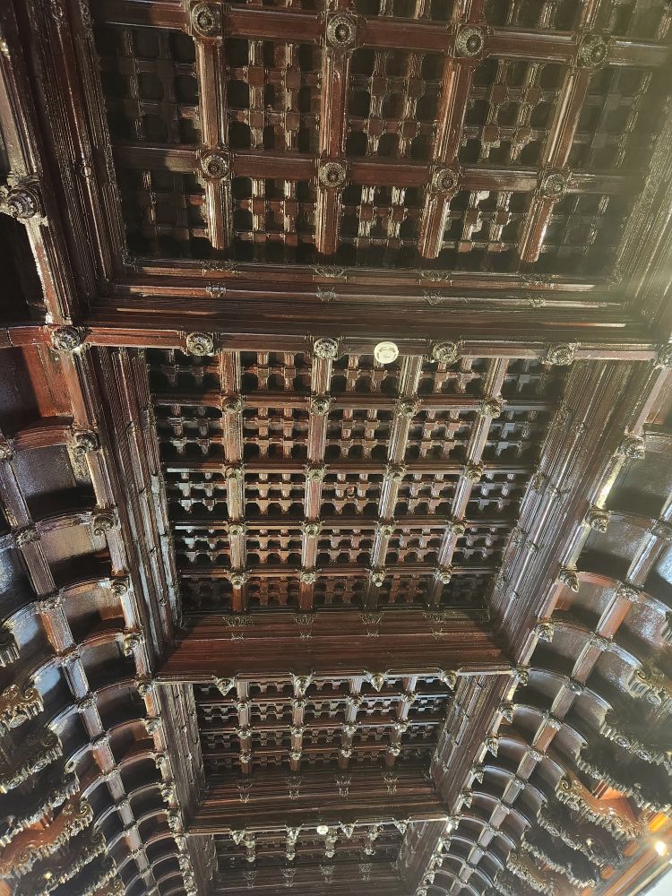 The Palace is also known as the Dutch Palace even though it was built by the Portuguese Empire in 1545 as a gift to the kingdom of Cochin. The Dutch took over the palace when they replaced the Portuguese rulers in the mid-1600s. Paying our totally expensive entrance fee of 5 INR each – seriously that is $0.06 cents USD – we enter into the Coronation Hall with an incredibly ornate wood ceiling and various other teak furniture that we aren’t able to get a good look at, because, unfortunately, we have arrived right behind a ship tour. Eek.