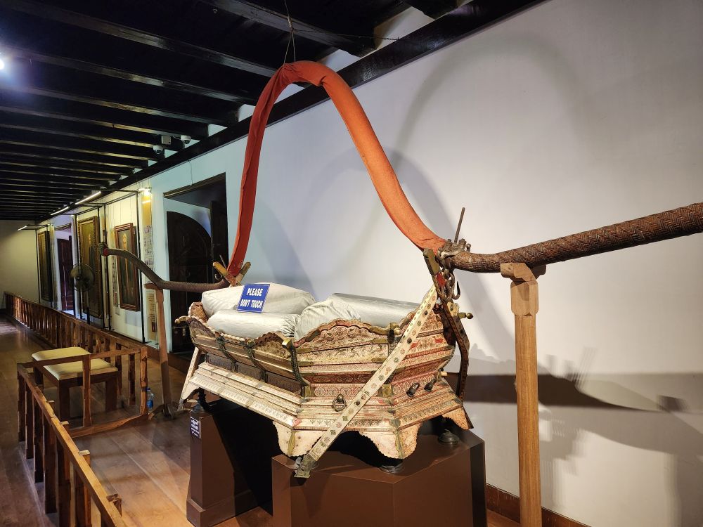 Other rooms contained various Palanquins (a covered box designed for one passenger to be carried by 4 to 6 people on two poles), made out of ivory, explanations of the makeup of the royal family plus tons of information on the martial arts form, Kalarippayattu, which was demonstrated to us last night in the folkloric show on board. One of the interesting facts: This form of Martial Arts went into decline during the British Rule because they actively worked to weaken any native military groups or uprisings. The British actually banned Kalarippayattu. Once British rule ended, in the 1920s, Kalarippayattu regained interest and revival through today.