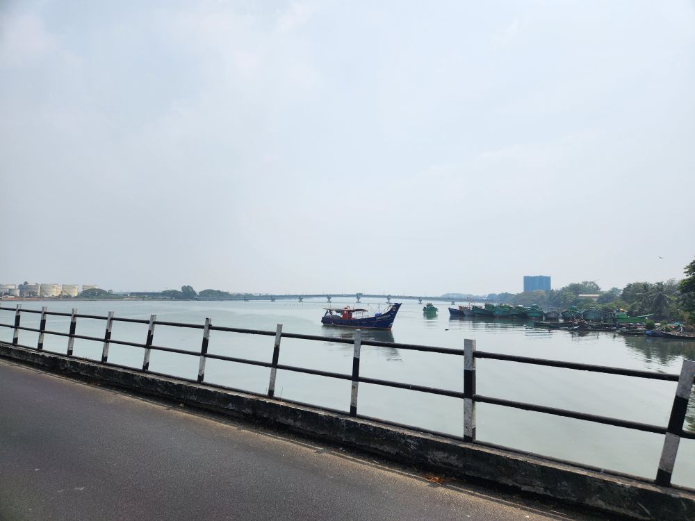 We’ve researched our game plan today, since we can’t go to the waterfall (boo hoo), we’ve decided not to go all the way over to Fort Kochi, but just stay on the side of the town that is closest to the water facing Willingdon Island. We’ve pretty much covered all of Ft. Kochi, but not really this side – so what the heck. After our typical morning activities, we head out into the Tuk Tuk fray, ignoring all the calls for rides, and walk over to the ferry station. On our walk yesterday we spotted a ferry terminal that has a ferry going right across the river landing directly across from the Mattancherry Palace, which is our ultimate destination – so we aim for this station instead of the other one we scoped out. As we are walking, one of the tuk tuk guys is super persistent, following us down the street, telling us he would take us on a tour, which we keep refusing as we’ve been just about everywhere – except this palace. As we continue on our way, one of the cruise passengers came by in a tuk tuk and offered to take us wherever we wanted – he said he was paying! How sweet was that? Anyhow, we kindly refused his offer and kept heading to the other ferry terminal with our tuk tuk stalker in tow. Well, as it turns out, that particular ferry terminal didn’t have any service on Sunday. Darn. Well, the backup is always Uber anyway, so Plan B. Our tuk tuk stalker remained with us, persistent as ever, even though much pricier than Uber. We kept telling him Uber was cheaper, showing him the price, but he wouldn’t go that low – telling us his was a small business, a family enterprise. True, but….he started out at $5 USD each – nope. Got down to $5 USD – but the Uber was $2 USD. And the Uber driver is a small business, also, so yeah, what can we say! Our Uber tuk tuk arrived and we and zipped into town, directly to the Mattancherry Palace.