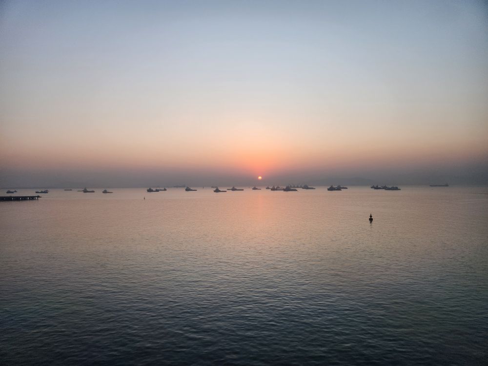 A gorgeous, if not hazy (smoggy?) sunrise greets us for our last full day and night aboard the Millenium.