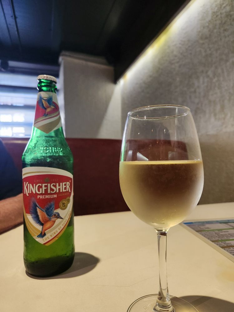 After a couple of missed places (it is REALLY hard to find things on the street, even though you have pictures from GoogleMaps), we finally ended up at the Canara Lunch Home & Bar (we were actually looking for the Dakshin Bar & Kitchen which ended up being right next door, but again, finding names for these places on the building is ridiculously difficult!). We thought it was Dakshin, and there was a guard out front who ushered us inside; how could we argue with that? We were the first customers – who is surprised? – but were still allowed to order our drinks (Kingfisher and Sula, yay!) and hang out until the kitchen officially opened. When our food did finally come, it was excellent. An order of Tikka chicken, grilled, spiced to perfection, and Butter chicken with a side of garlic Naan – all excellent and a spot-on first meal in India.