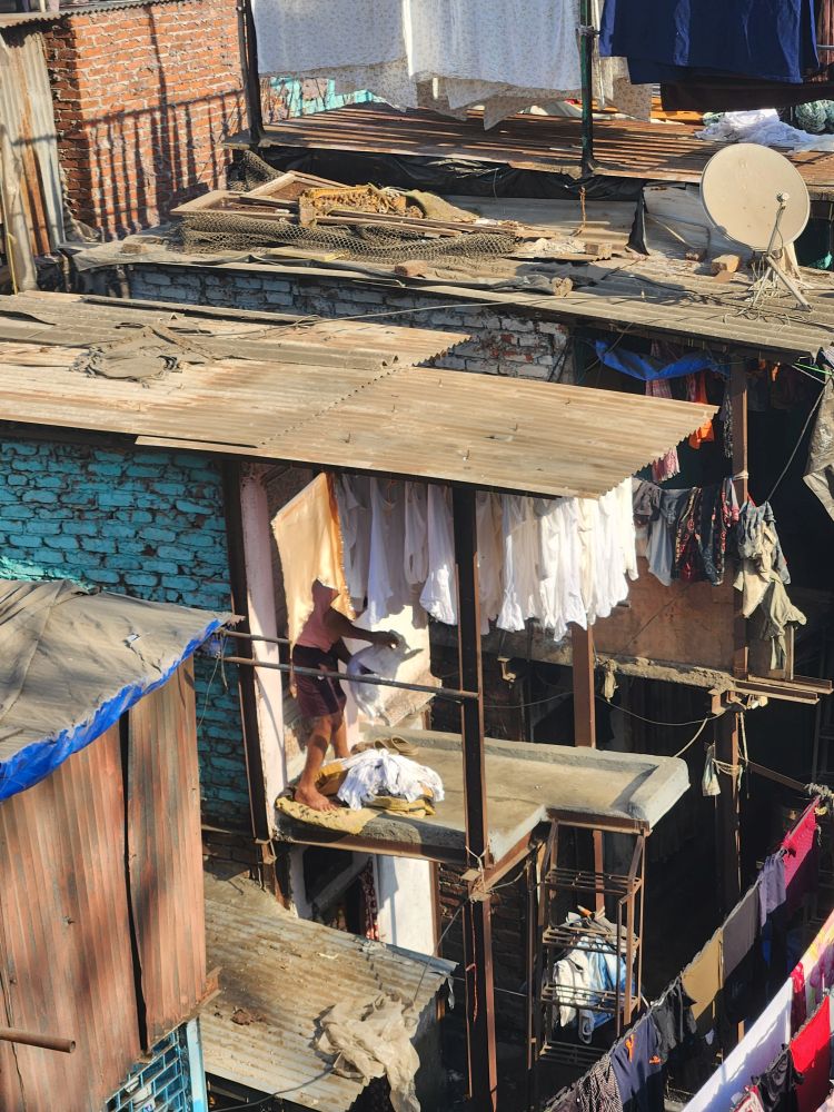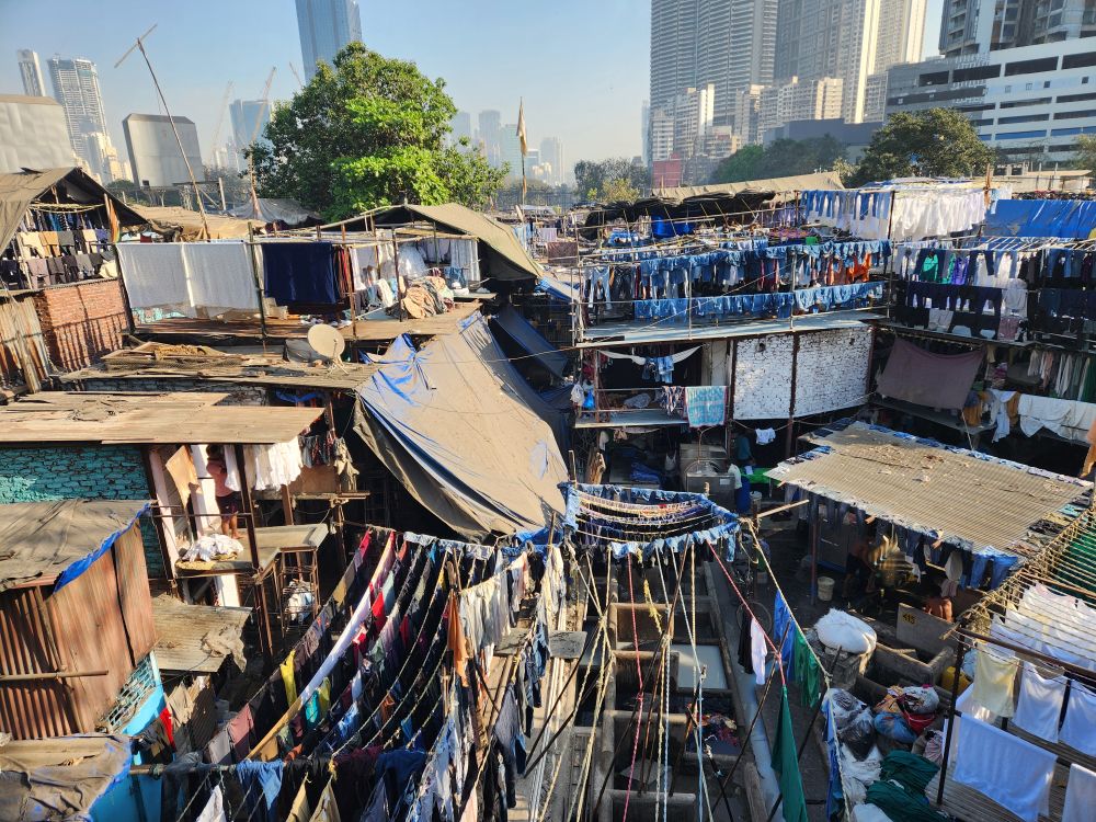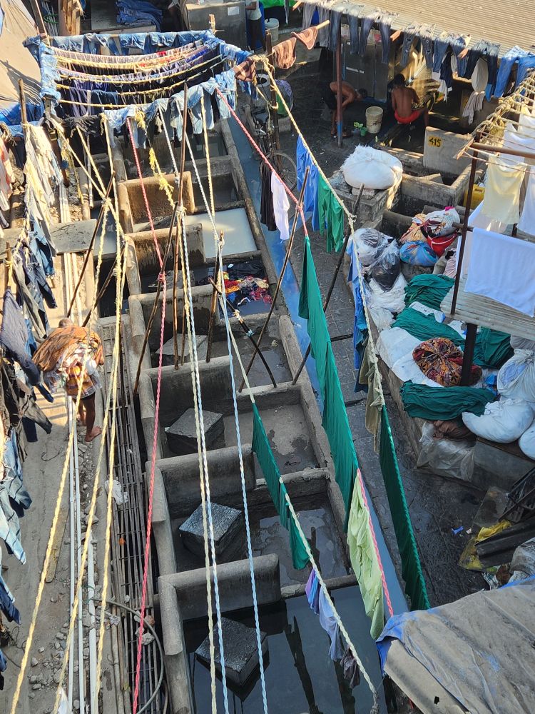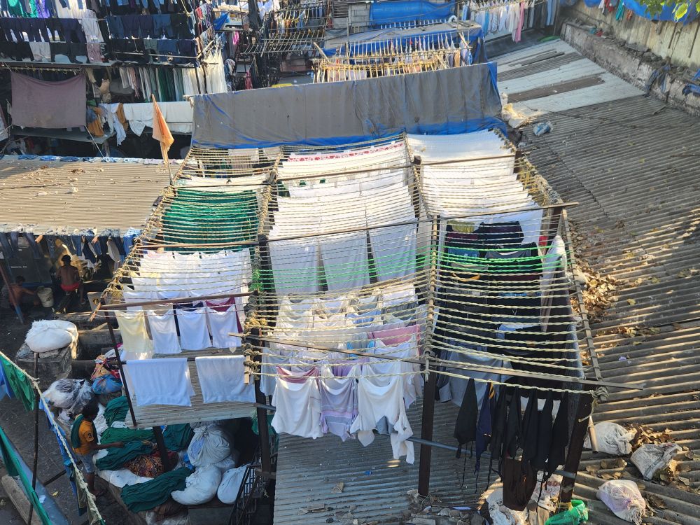 Our first stop is Dhobi Ghat – Dhobi meaning the person who is washing; Ghat the place where the clothing is washed – where we have been before, but our last visit was late in the afternoon and not much was happening. Today, the Dhobis are in full washing mode as we stand on the viewing platform looking out over the acres and acres of open air concrete washing stones and basins. Husain explains that over 7500 people work in Dhobi Ghat, washing over 100,000 pieces of clothing and linen each day for individuals as well as hotels and businesses across the city. Each Dhobi has their own assigned wash basin where they wash and scrub the clothing against the large rock in the center of the basin. Talk about tough work. All the Dhobis live here; profession and housing passed down from generation to generation. But, as with most manual professions, more and more of the young people are going to school and moving away for better jobs – making the number of Dhobis dwindle each year. There are fears of the whole profession, and area, eventually dying out.