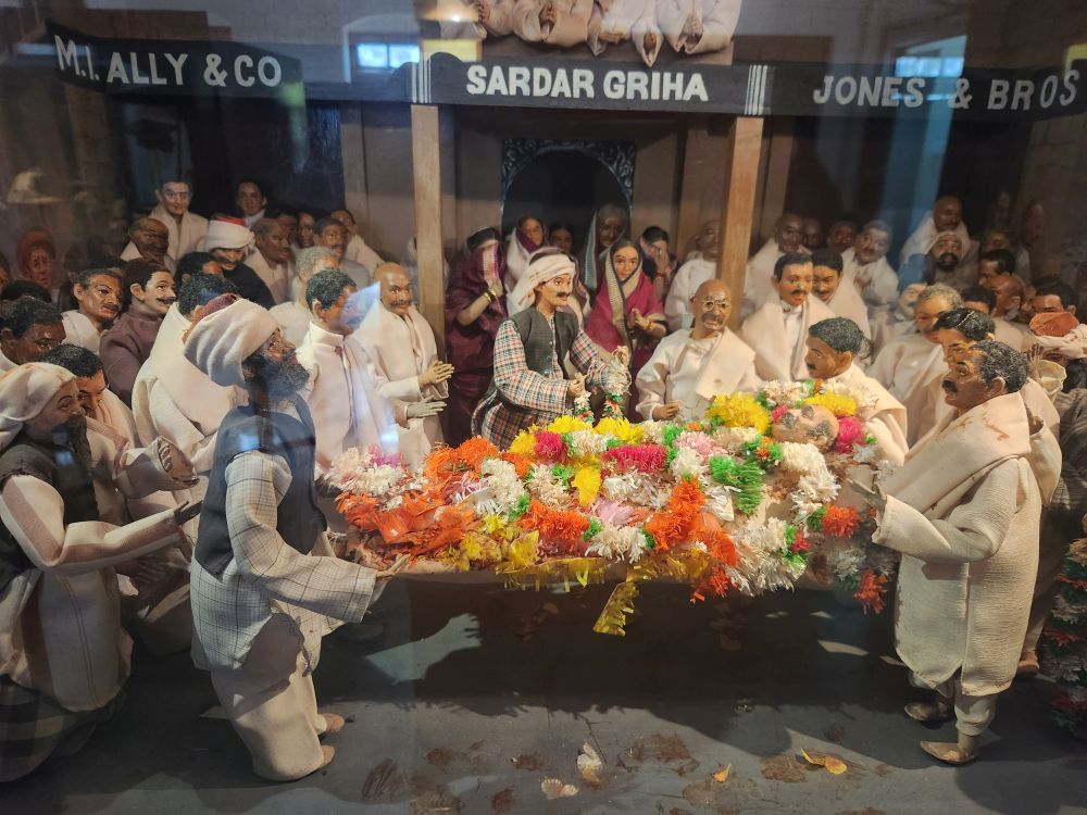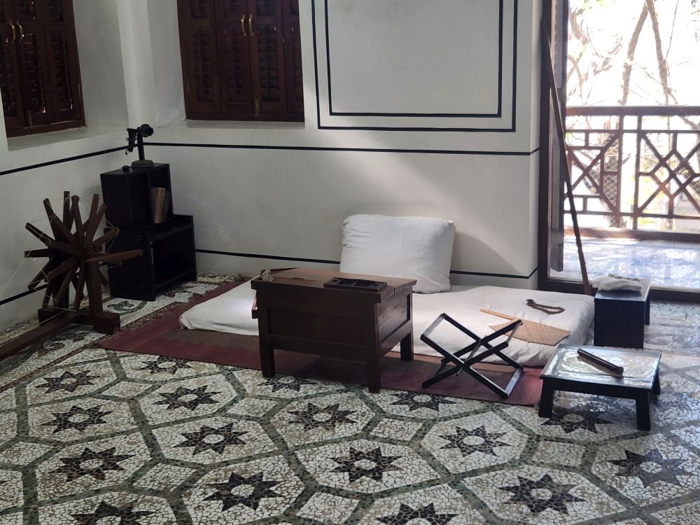 Onto the Mani Bhavan house, the house where Mahatma Gandhi lived from 1917 to 1934, and from where he started the successful Satyagraha (nonviolent resistance translated to mean “Holding firmly to truth”) against the Rowlatt Act in 1919, which allowed for “revolutionaries” to be arrested and detained without trial and was ultimately designed to suppress dissent and maintain British control. We were here in 2017 as well, and remember the highlights, but it was nice as a refresher. The museum is pretty small with 3 floors, but tight spaces. We were lucky that we were in between school tours, we followed one group in and were finished by the time more arrived. Gave us plenty of time to explore the top floor which holds the miniature dioramas depicting Gandhi’s life. They are so detailed and lifelike! Then only his room, kept exactly as it was when he was living here, and the famous terrace where he slept and prayed in his tent, and where he was arrested in 1932 after the civil disobedience movement was reinstated. His arrest ultimately led to the independence movement and the partitioning of India.