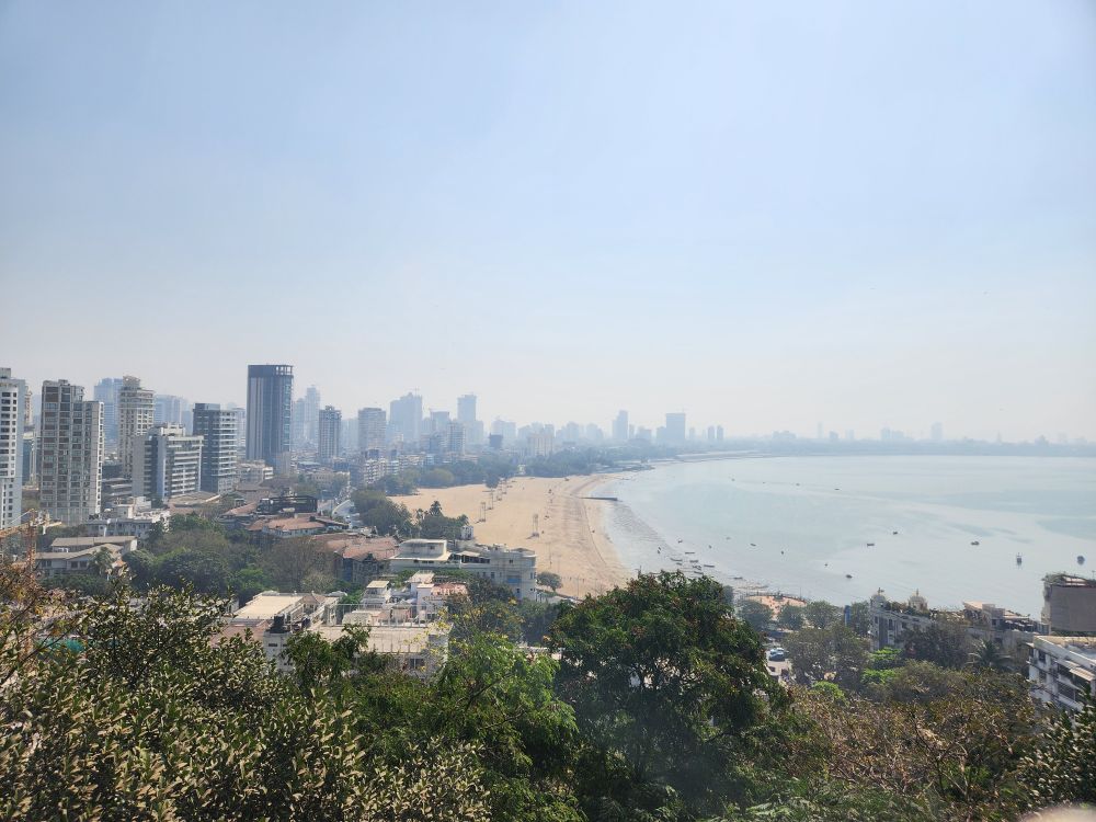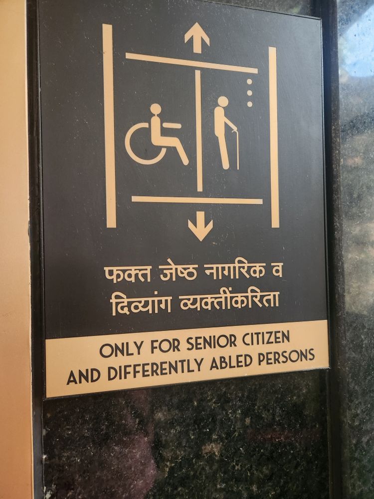 Husain then walks us across the street to a really great lookout tower with spectacular views across the bay and Nariman Point. We get to use the “senior” elevator. LOL! Guess we do meet the age requirements!