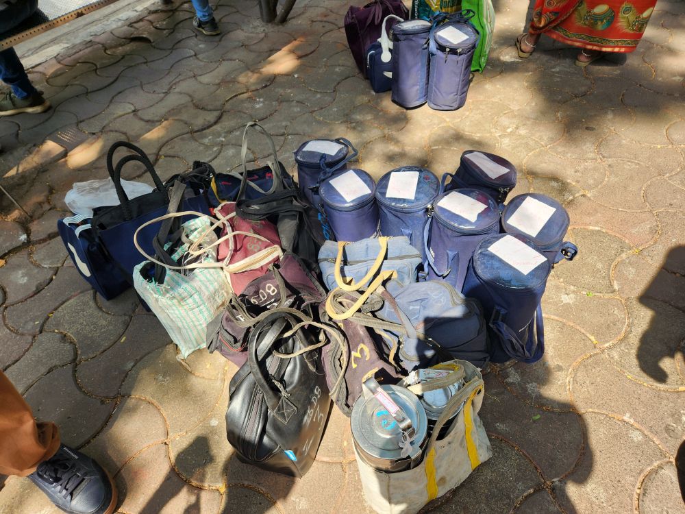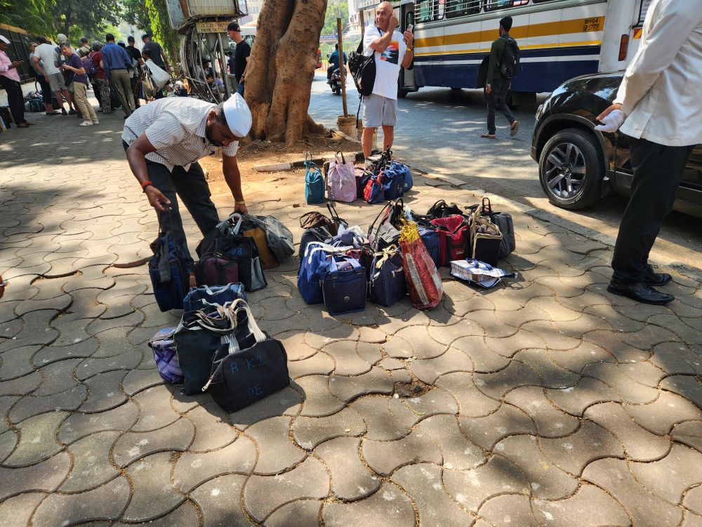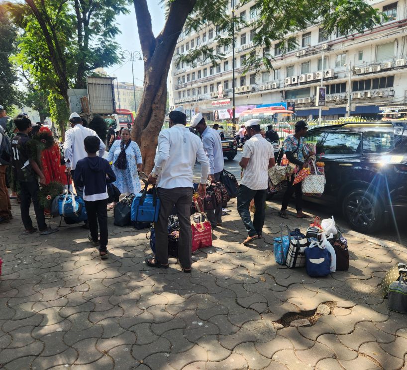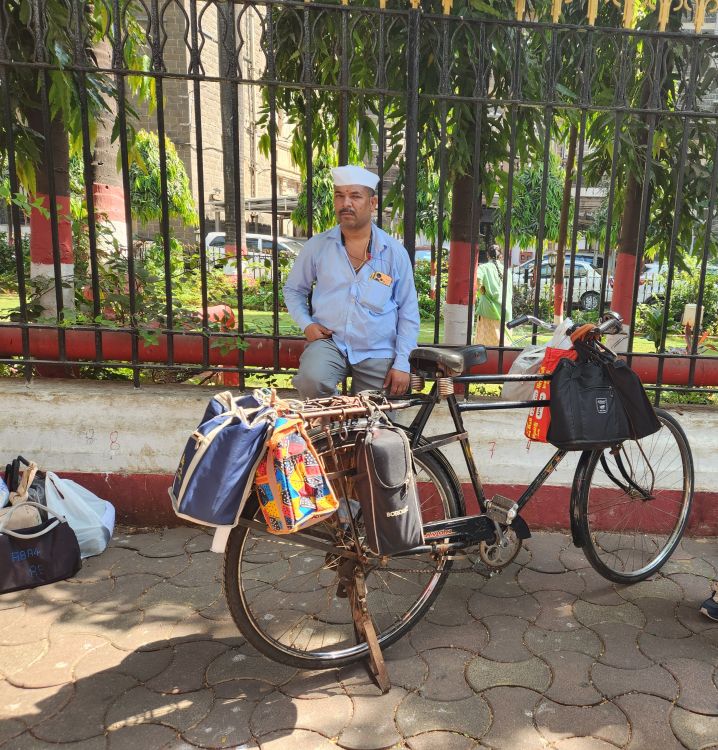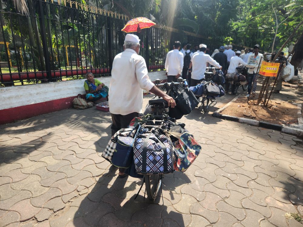 Our next stop is the Dabbawala corner – across from the Churchgate train station and Western Railway Headquarters (an old colonial heritage building), where the lunch deliverers come from the villages on the train. Each of the Dabbawalas starts in the home towns outside the city, picks up the lunch bags, then takes the train into Mumbai and delivers the lunches. The bags are all marked in codes, meaning only the specific Dabbawala can deliver them, because no one else knows the code or where the lunch goes. They’ve “modernized” their service and now use lunch bags, not the big silver round stacking containers of old. But they are still on bikes, with all those bags strategically hung on the rear baggage racks. So amazing!