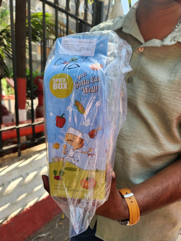 Husain says it is a great service. Most of these lunches are prepared by the family for the worker, but even if you have no one to cook for you, you can purchase a daily delivery for $50/month – which gets you 26 days of meals. Husain shows us one of the purchased meals, all packed in what looks like a milk carton. Awesome!