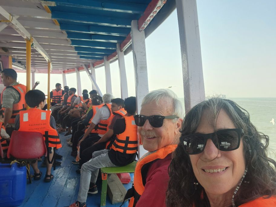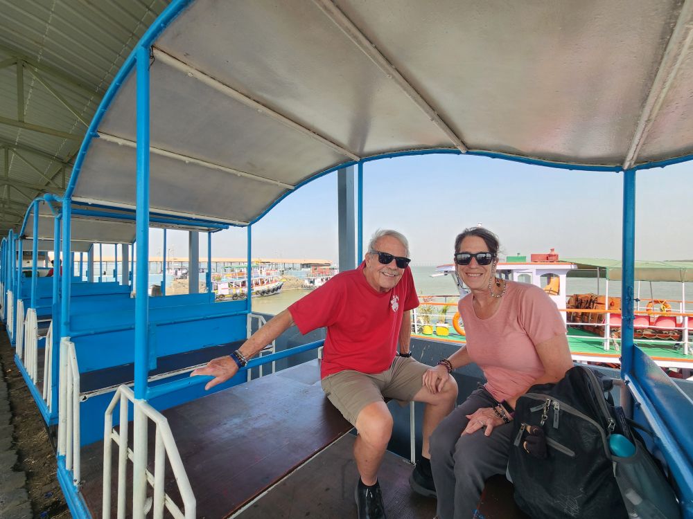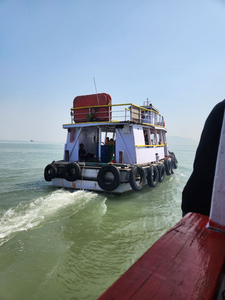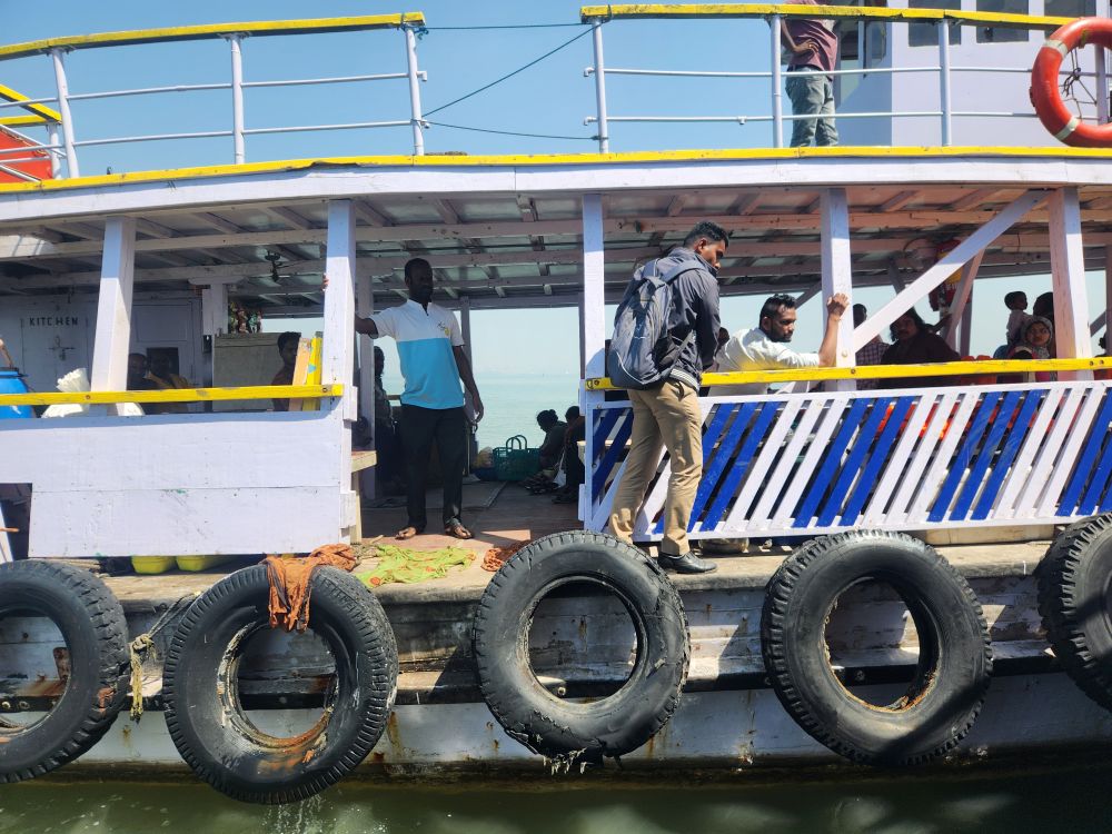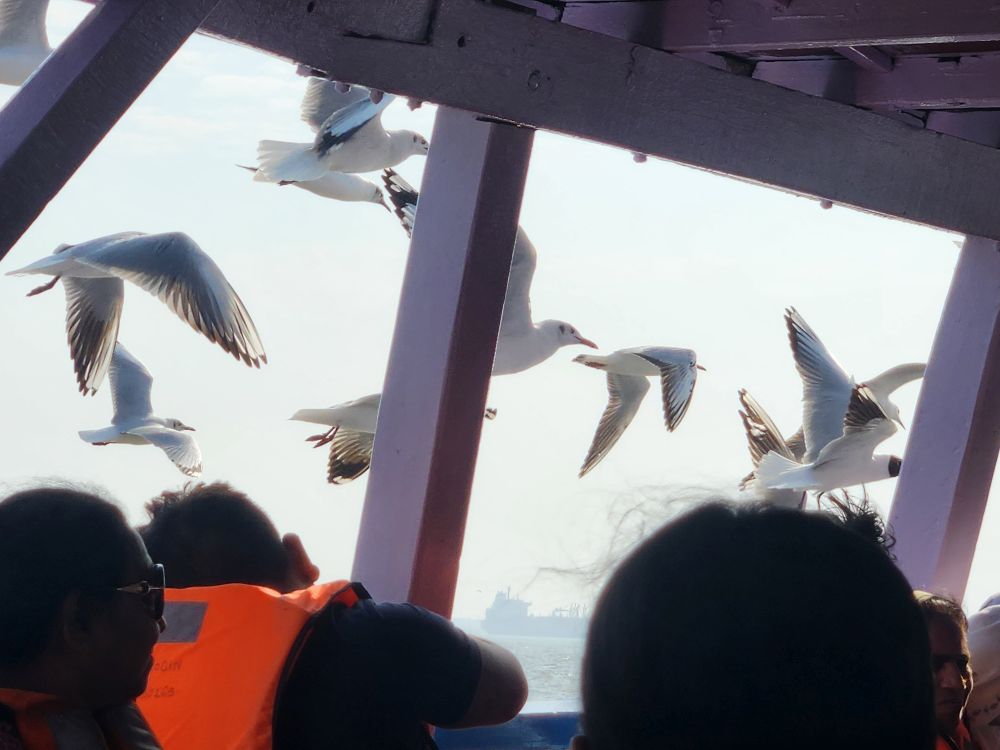 We got some great shots of the island on our way out, plus many more birds (of course). As we chugged our way to Mumbai, I WhatsApp’ed Husain, who had never sent the driver’s phone number. No response. Ugh. We also still hadn’t received our trip documents (train tickets, hotel vouchers, etc.), so Ed also WhatsApp’ed Amit to see when/where we would receive them. No response from Amit either. Sigh. As we said previously, there is always Uber to get back to the hotel tonight, but tomorrow, who knows? Finally, Husain responded with the driver’s number, I WhatsApp’ed and again go no response. Back to Husain, who finally just communicated with the driver himself and told him we were on the ferry. He also found out the driver did indeed have our documents. Details, details….a little lacking for the uber-spreadsheet-detail-oriented Stevens!