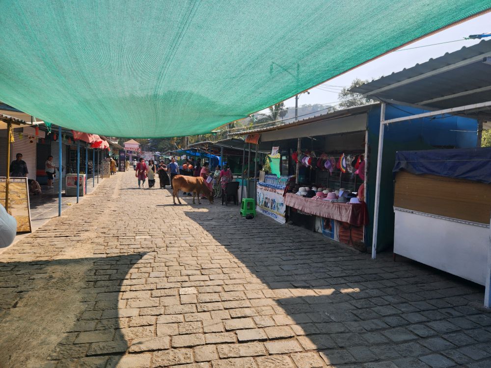 Finally to the island, we were indeed met by our guide, Nikhel, who escorts us to the Toy Train for our ride from the pier, passing by a little bay area at low tide and then letting us out at the beginning of a big shopping stall arcade that leads up to cave entrance. Tons and tons and tons of shops are set up along the stairs that lead up to the cave – all of which Nikhel tells us to ignore, we’ll see them later after the cave visit. We’re good!