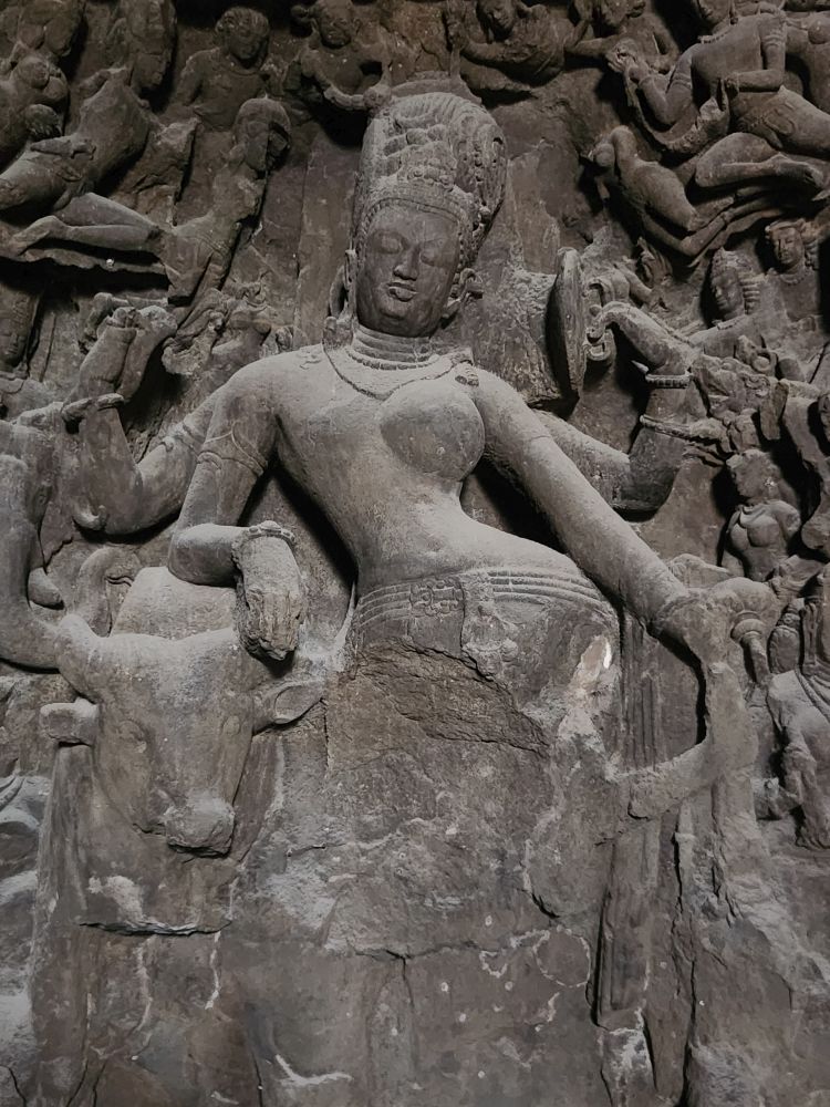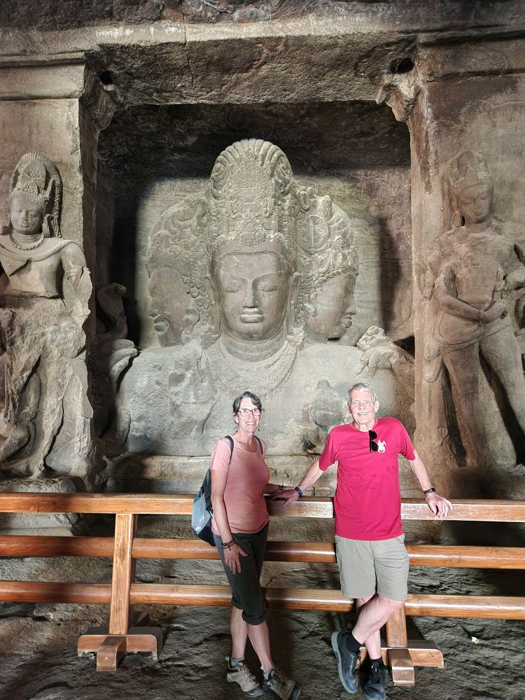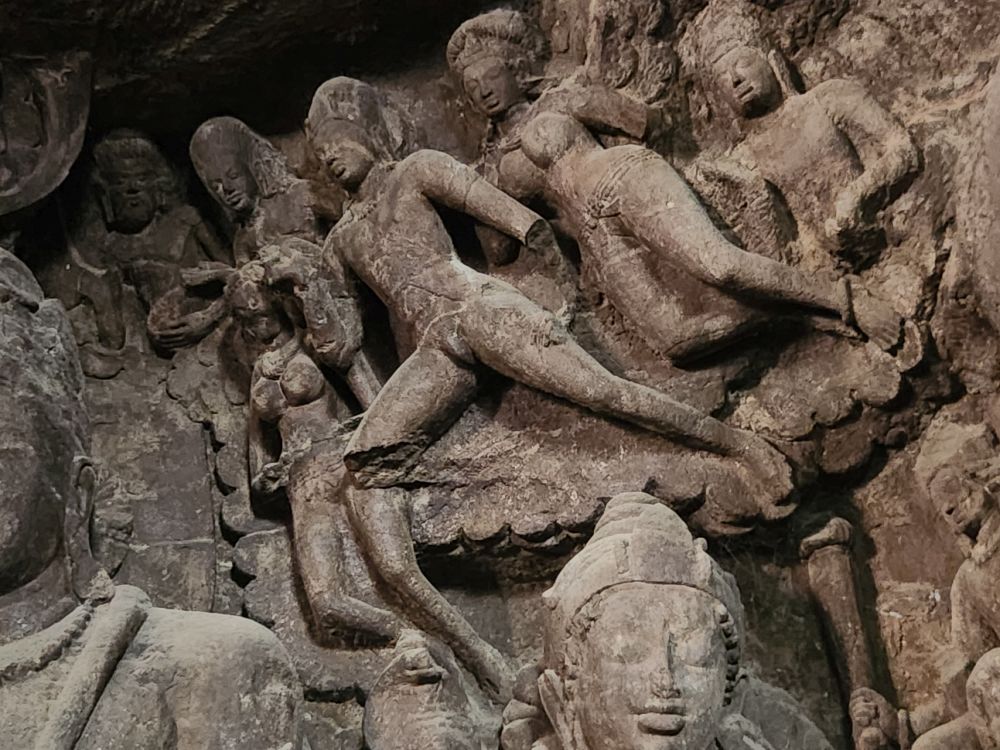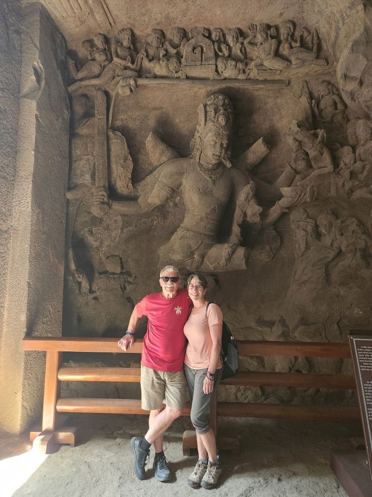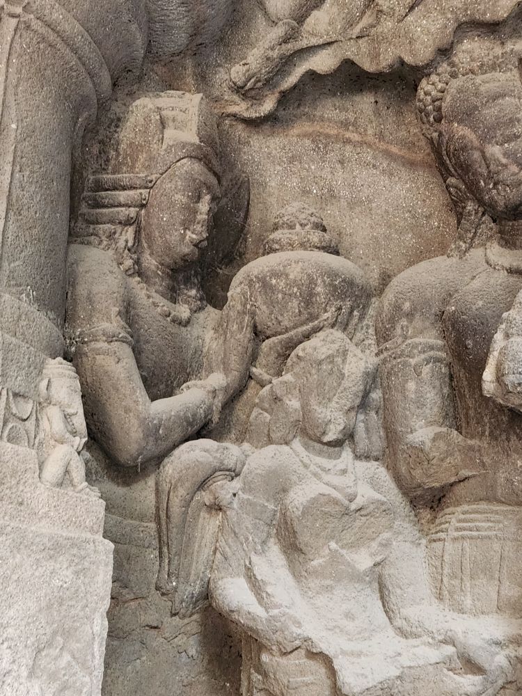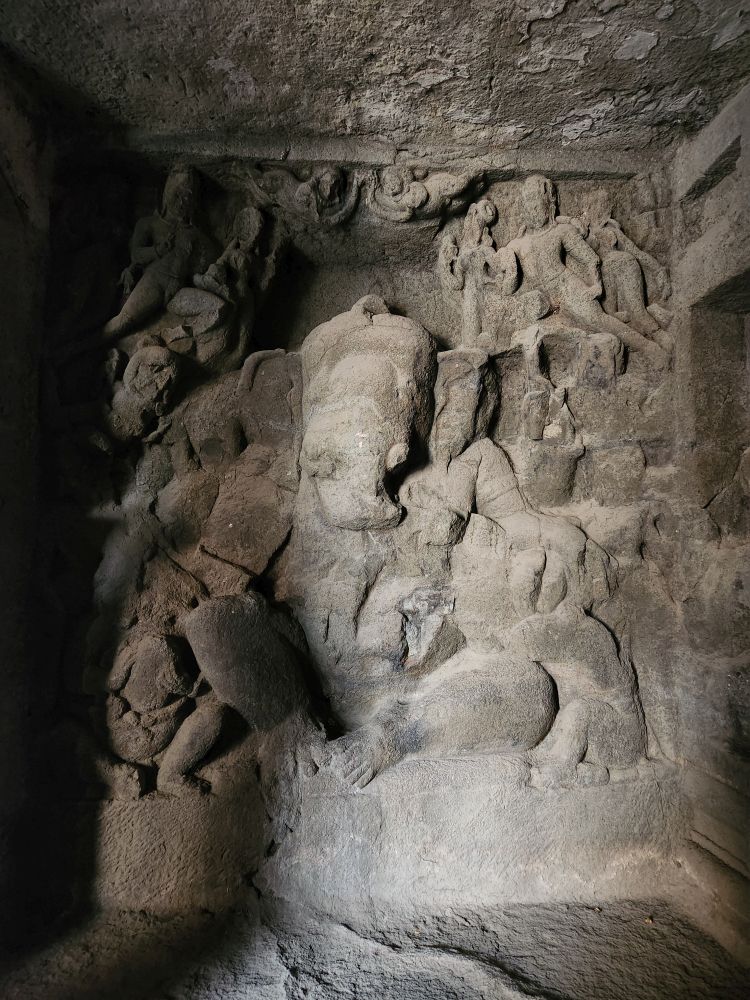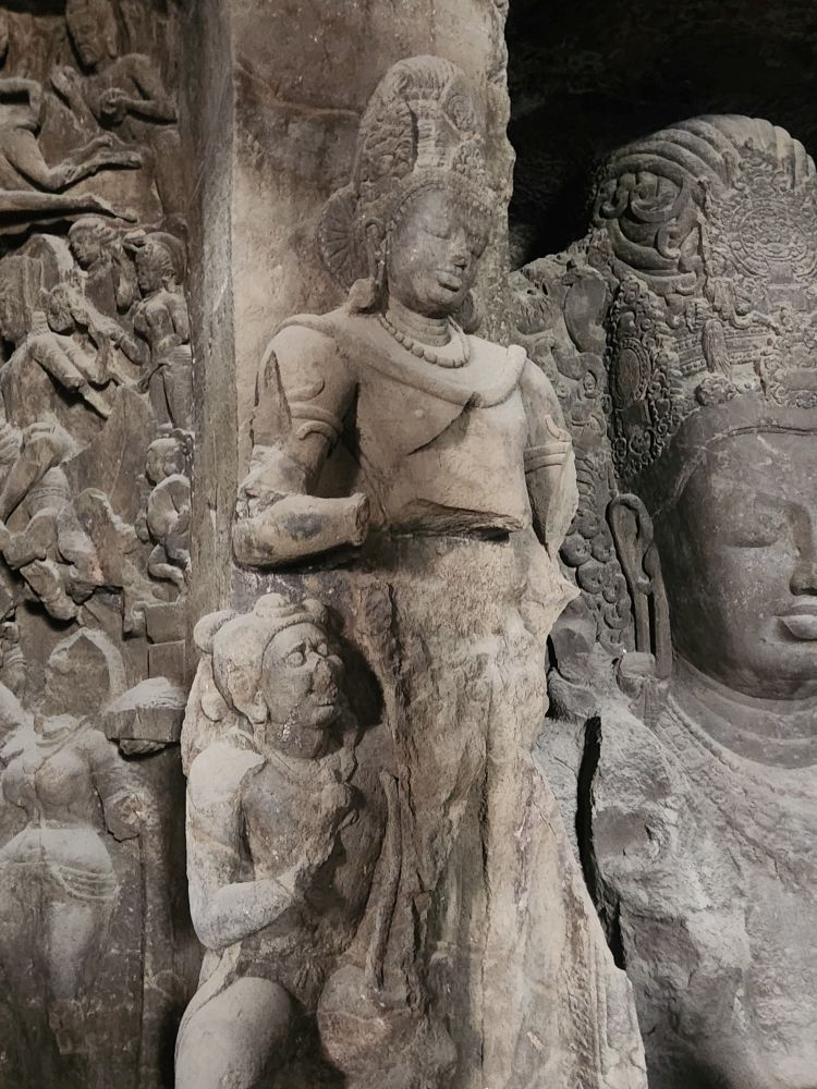 The main cave is the biggest attraction with 9 main carved panels of Shiva in various manifestations. We won’t go into huge detail – but suffice it to say, we had a wonderful time exploring all the different panels, and being photographed by Nikhel at every turn! We started with the temple in the center of the cave, then worked out way to the Andhakasura – Vadha, Shiva destroying the demon king.