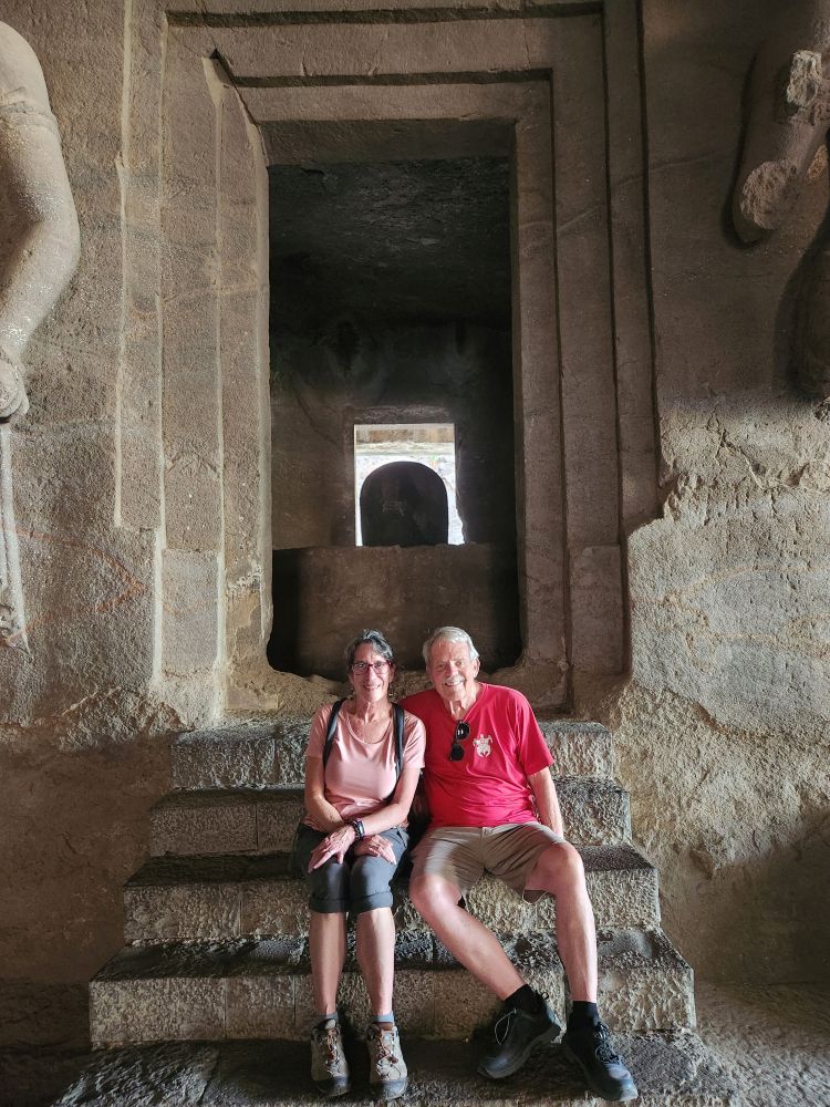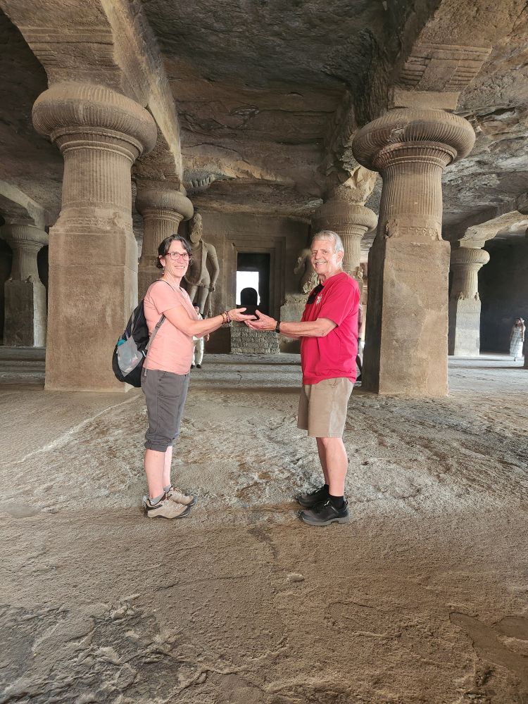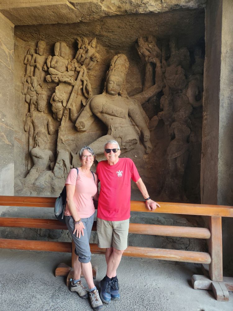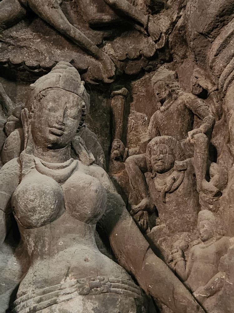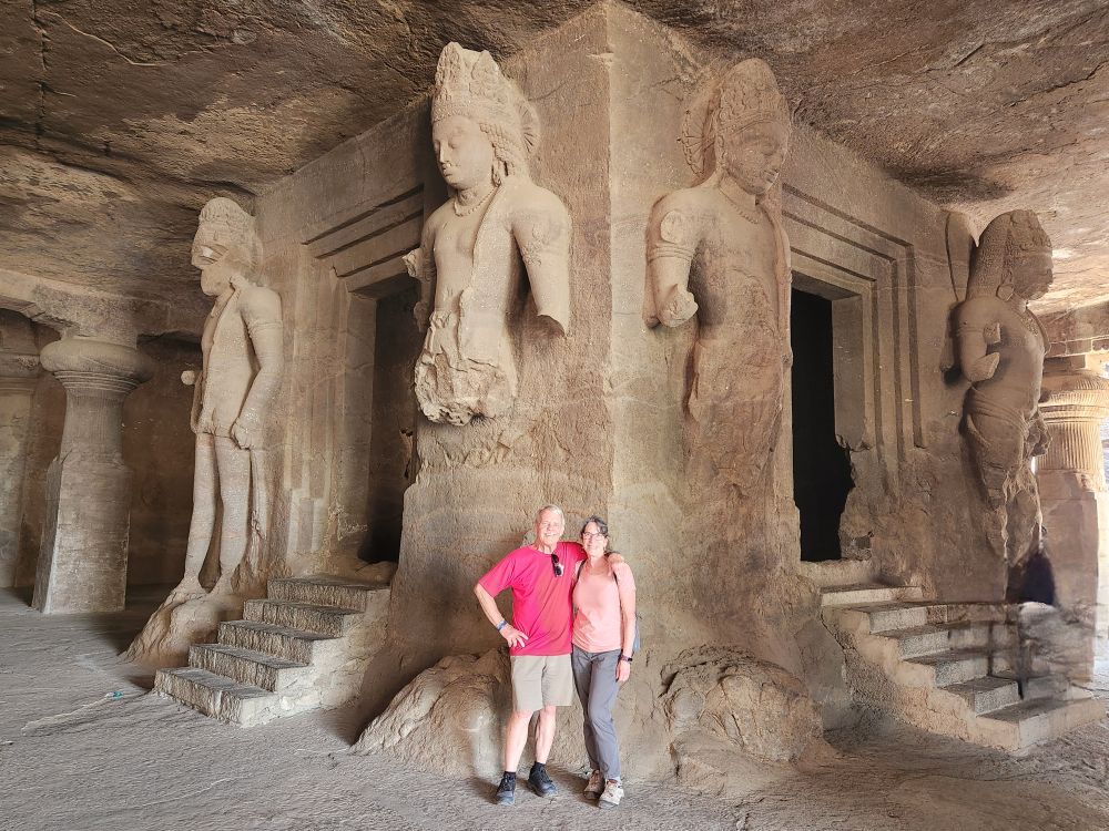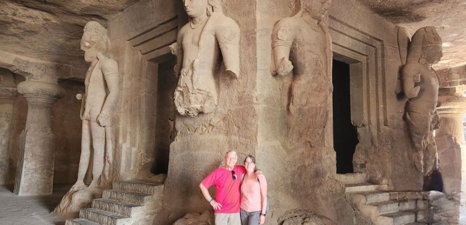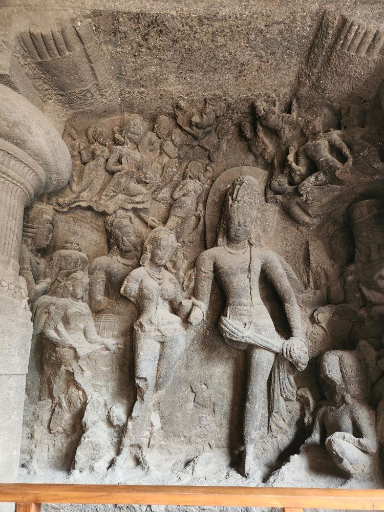 The main cave is the biggest attraction with 9 main carved panels of Shiva in various manifestations. We won’t go into huge detail – but suffice it to say, we had a wonderful time exploring all the different panels, and being photographed by Nikhel at every turn! We started with the temple in the center of the cave, then worked out way to the Andhakasura – Vadha, Shiva destroying the demon king.