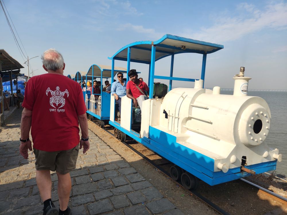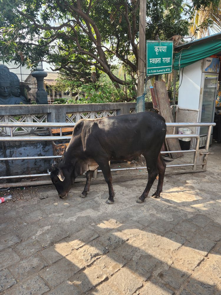 Back down the walk, past the cows (everywhere!) we bought a pair of cheap sunglasses for Ed, then since we had time, and didn’t want to hang out for the toy train, we walked back down the long pier (past more cows) to the ferry, where Nikhel deposited us and off we went.