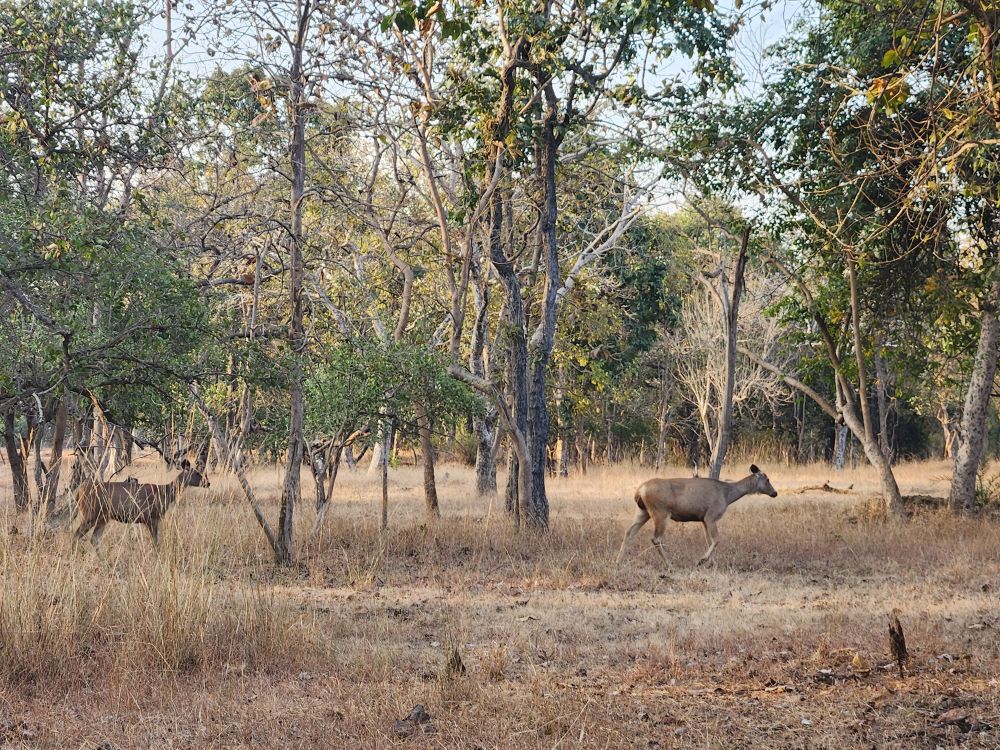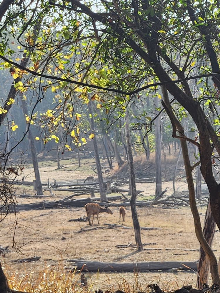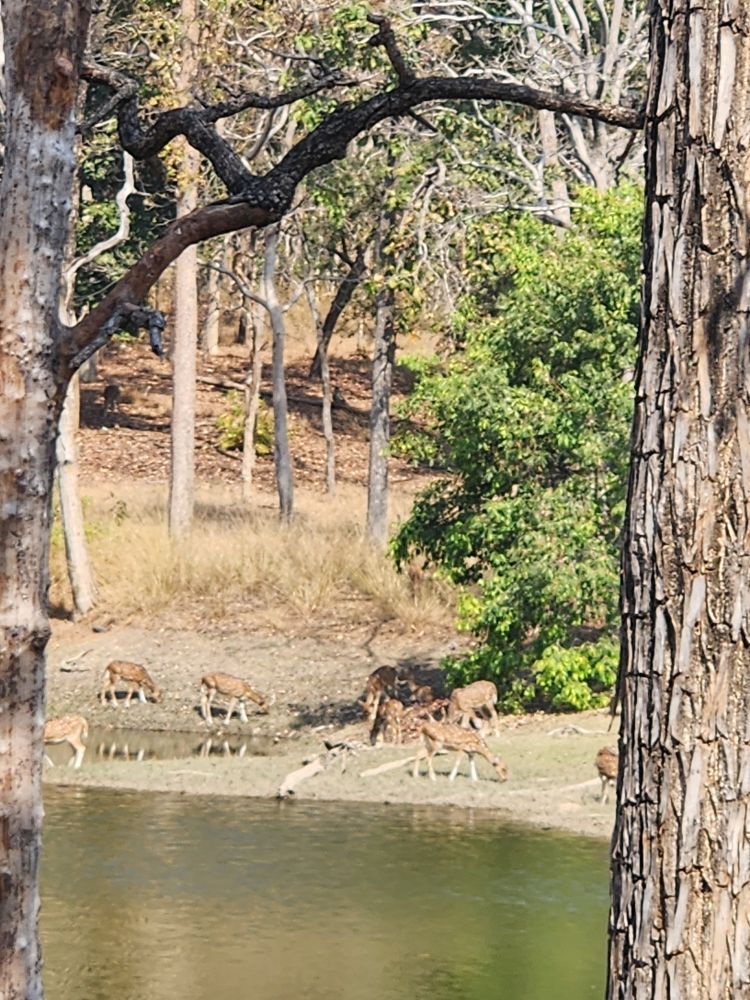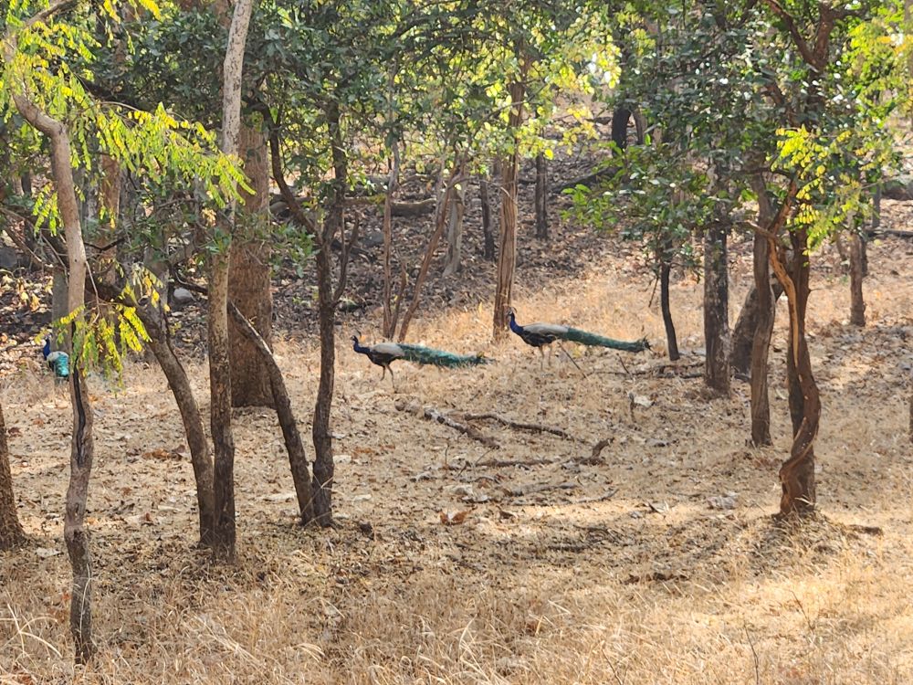 Once into the park, the jeeps peel off onto 3 different tracks and we are pretty much all alone on the one our driver and guide have selected. The little narrow 2 track roads reminds us of Biltmore Estate hiking trails – it is same type of terrain, maybe a little less dense in some places (but then again, with the aftermath of Helene, it probably isn’t all that much different here!). It is quiet, peaceful and just lovely to be out in the wilderness and pretty much the only jeep out here. There are lots of deer, wild boar, peacocks, and monkeys, of course.
