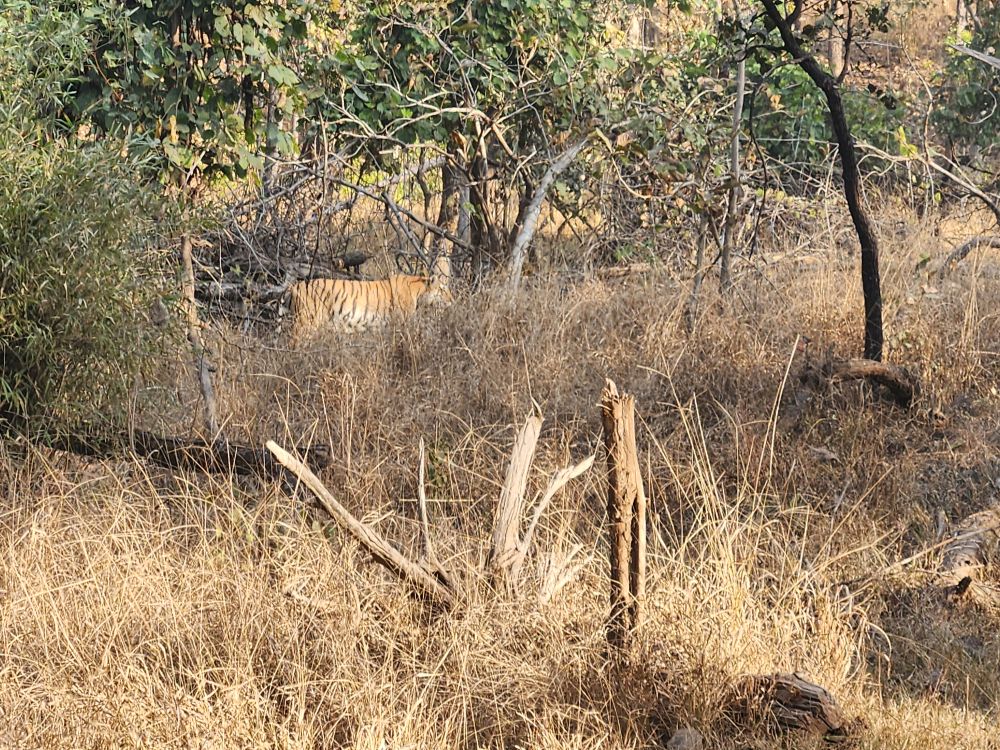 As we rode, both the guide and Flemming gave us tons of information: I kept hearing this noise I thought was a bird, but it was actually a squirrel; there are only 50 jeeps allowed in park per day – 37 at Turia (which is our gate), 7 and 6, respectively at the two other core zone gates, Karmajhiri and Jamtara. As mentioned before, Flemming was really good at hearing the deer or the monkeys (or whatever!) sound out their alarm calls that a tiger was nearby. And our guide was incredibly good at knowing where the alarms were coming from, then directing the driver to head in that direction. So good our team was, in fact, we saw a tiger!!! Yes! Finally!
