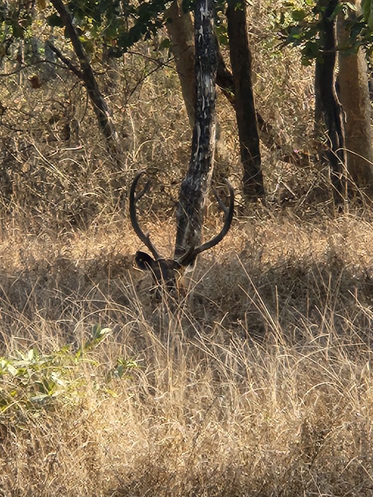 Back on the drive, we run across a beautiful Chital buck, the spotted deer, of which we’ve seen tons, but this guy basically poses for us.