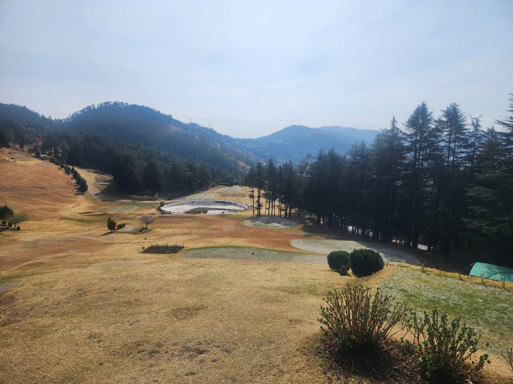 But now we are on the road, heading to our first stop, the oldest golf course in the country, Naldehra Golf Club. Built in 1905 by the British, at the time it was the highest golf course in India, with an all natural course – hills, valleys, mountains – the course is just set up in and around the entire terrain. Our guide – who we will call Shankar (which means Ganesh or Lord Shiva or something and is a popular male name because we don’t know if we ever even got the guide’s name!) – plays golf here and tell us it is very hard to play because of the terrain. We can imagine, and don’t play golf at all. But just looking at the 18th hole, it looks pretty difficult to us.