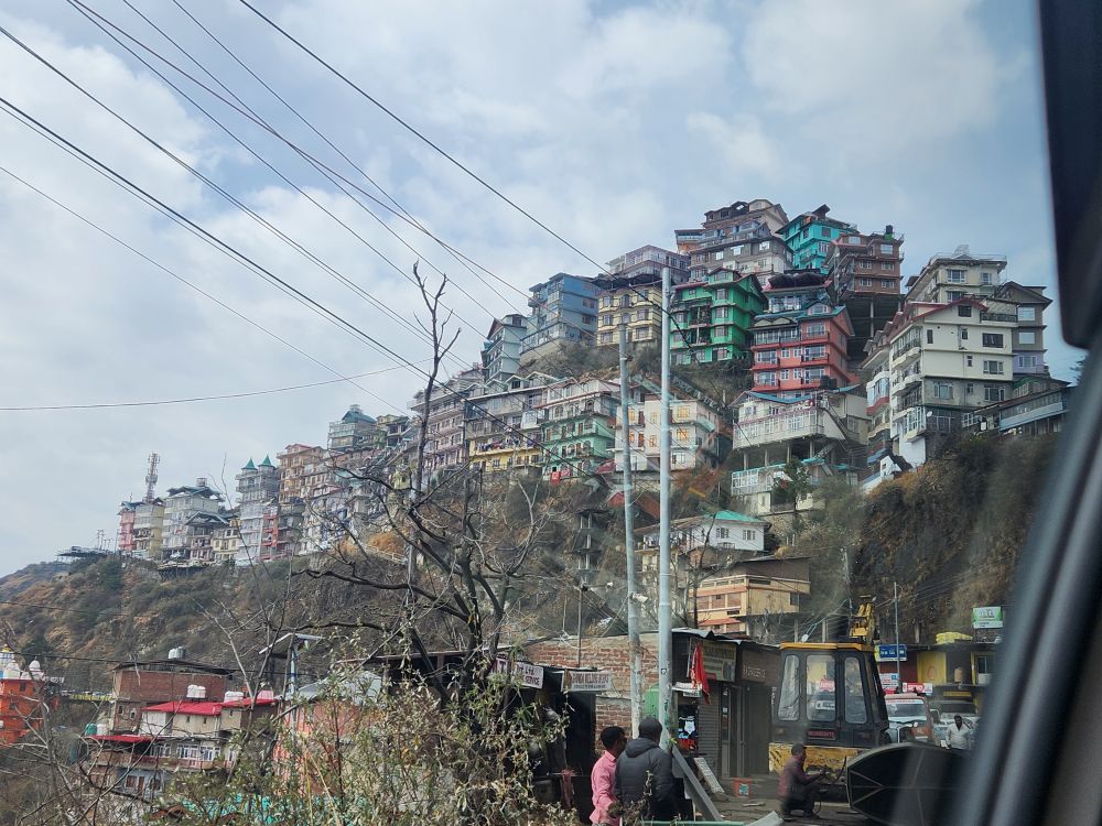 Along the way, Shankar gives us little tid-bits about India and the area we are driving through, explaining all the adventure experiences available here in Kufri, such as horseback riding, river rafting, even an amusement park that has activities both winter and fall. He tells us that this region of India produces the most apples after Kashmir and there are 100’s of different varieties of apples (which is really strange, because we’ve not seen a single apple or apple dish on any menu. Odd.). Shankar also explains that this region is the #1 region in Higher Education and places a huge emphasis on schools and learning. All fun facts as we drive through the beautiful scenery on our way to town where we can see how much development there is – building after building built into the slopes going up the mountains. Many of these large buildings are all apartments, mostly for village people who come into town to go to school or work. The commute is too much to handle on a daily basis, so they rent an apartment here. One individual typically owns the whole building but rents out the apartments to others.