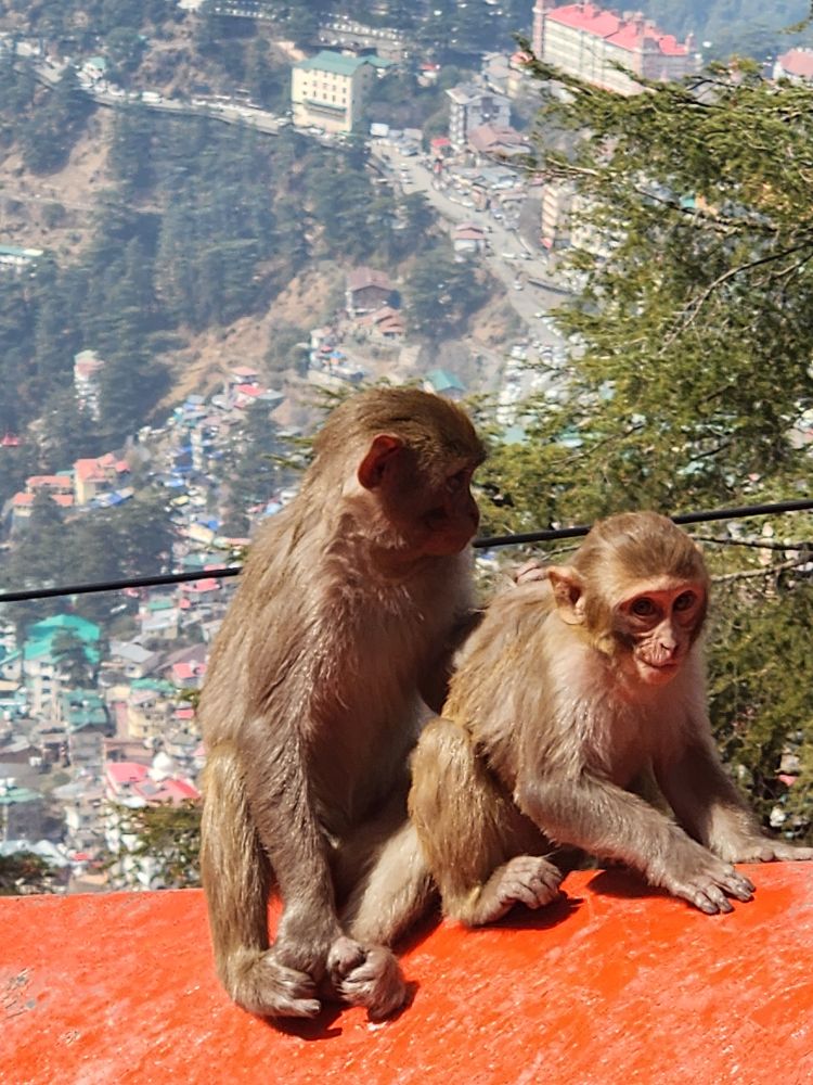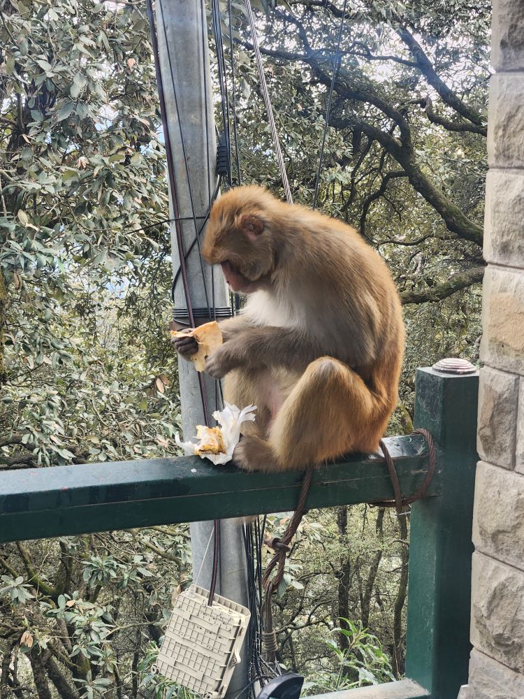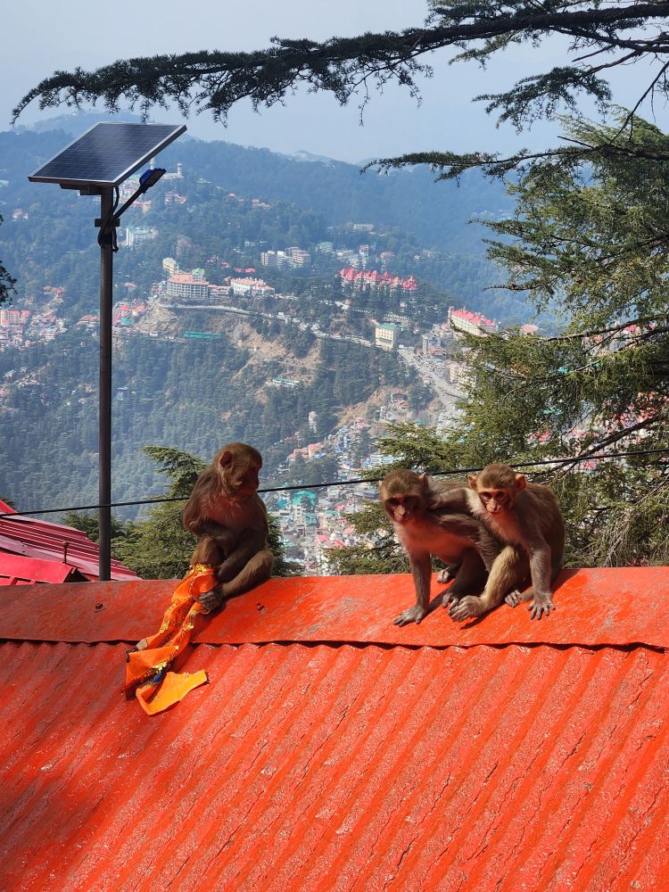 Our next stop is Jakhu Mandir Park – the temple with the 108 foot statue of Lord Hanuman. Legend has it that Lord Hanuman stopped at Jakhu Hill during Ramayana while searching for the herb to save Lord Laksman’s life, making it a very important site for Hindus. We pay to ride up the brand new escalator (inaugurated barely one year ago to help visitors get from the parking lot to the temple and an example of the Smart City iniaitive here in Shimla, to improve the city with road works, elevators, escalators, tunnels and more), and at this altitude? Oh absolutely we are riding, arriving at the statue and temple site with our lungs intact. There are more amazing views from up here – including the huge statue that is terribly hard to get into one photo – as well as monkeys playing on the rooftop that covers the stairs.