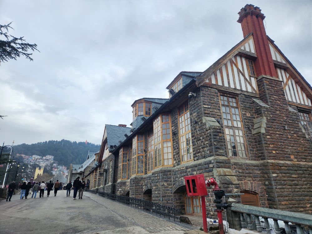 Shankar meets us at the café and continues our tour on the Mall. Up past the Town Hall, originally constructed in 1860, and encompassing the Gaiety theatre – which we will see next – this version of the larger, more grand town hall was constructed in 1910 to handle the summer government influx during British Rule. The Gaiety theatre, built in 1887 in Gothic Revival style, still stands on the Ridge – a popular place for people to walk and to watch the sunset and view the nighttime lights across Shimla. Originally a 5-story building with the theatre, various offices and galleries, after 20 years it was declared structurally unsafe, and partially demolished, leaving only the Theatre with the capacity for more than 300 people.