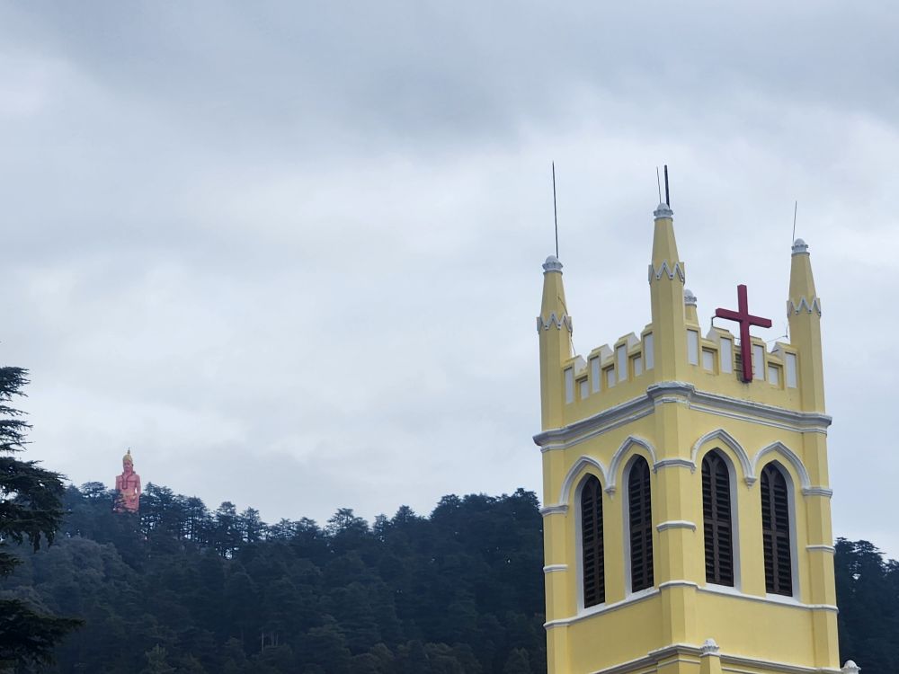 Then its onto the main event up here on the Ridge, the Christ Church, a neo-Gothic style church built in 1857 for the Anglican British community. It is a famous landmark for everyone in Shimla – as you can see it from just about everywhere around town (and our sweet train friends told us we had to go up to The Ridge to see it). The church has survived the partition and other political upheavals and continues to be maintained. We didn’t go inside, but one of the stained-glass windows as designed by Lockwood Kipling, Rudyard’s father, and the pipe-organ, installed in 1899, is the largest on the Indian continent. One of the things we loved up there is that you can see the church steeple as well as Lord Hanuman up on the hill – two cultures juxtaposed.