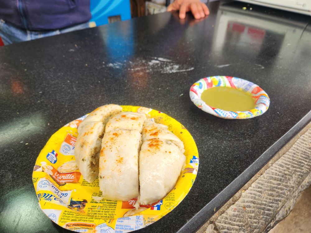 Heading back to the car, we asked Shankar if we could try a Siddu (the treat our train friend said she loved) – he found this great little stand right on the plaza by the church which had them. True to what train wife said, they are big baked/boiled bread things – but this one was stuffed with something spicy, not sweet like she said. And it was monstrous! Definitely something we did not need after that huge carb-laden lunch. Particularly when it wasn’t the sweet thing we expected. Ah well, we only halfway finished it with Shankar giving the rest back to the guy in the stall, telling him to feed the animals with it. That worked for us, but have to tell you the guy in the stall looked at Shankar like he was crazy.