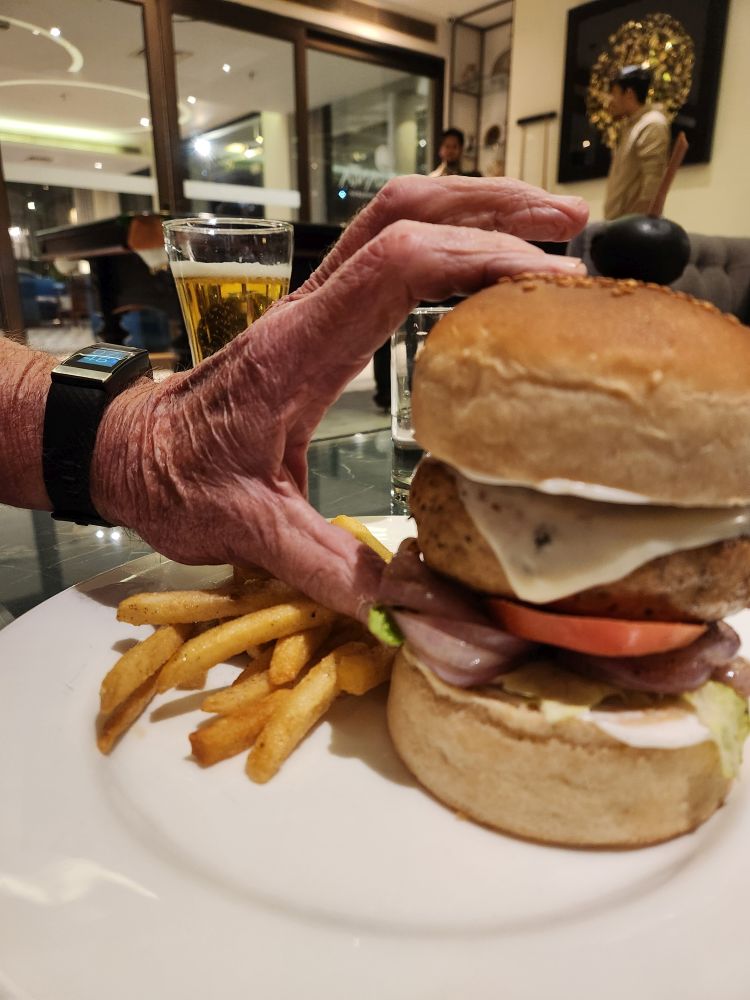 And that was our Shimla tour day. Another very successful experience on the AMT tour. Shankar and the driver bring us back to the hotel, where we now have a few hours to kill before dinner. Tonight we decide to eat in the lounge as we don’t feel like waiting another 30 minutes for the restaurant to open. Ed goes whole hog and orders the “Jumbo Burger” – chicken of course – and Holy Guacamole, is it every Jumbo! Absolutely monstrous! And very good -but oh so big! I have the delicious chicken spring rolls – why mess with a good thing?
